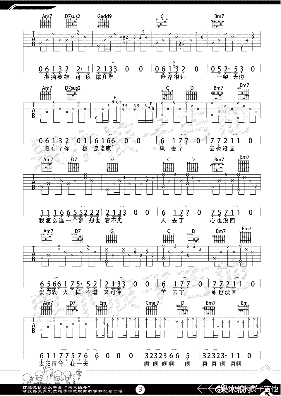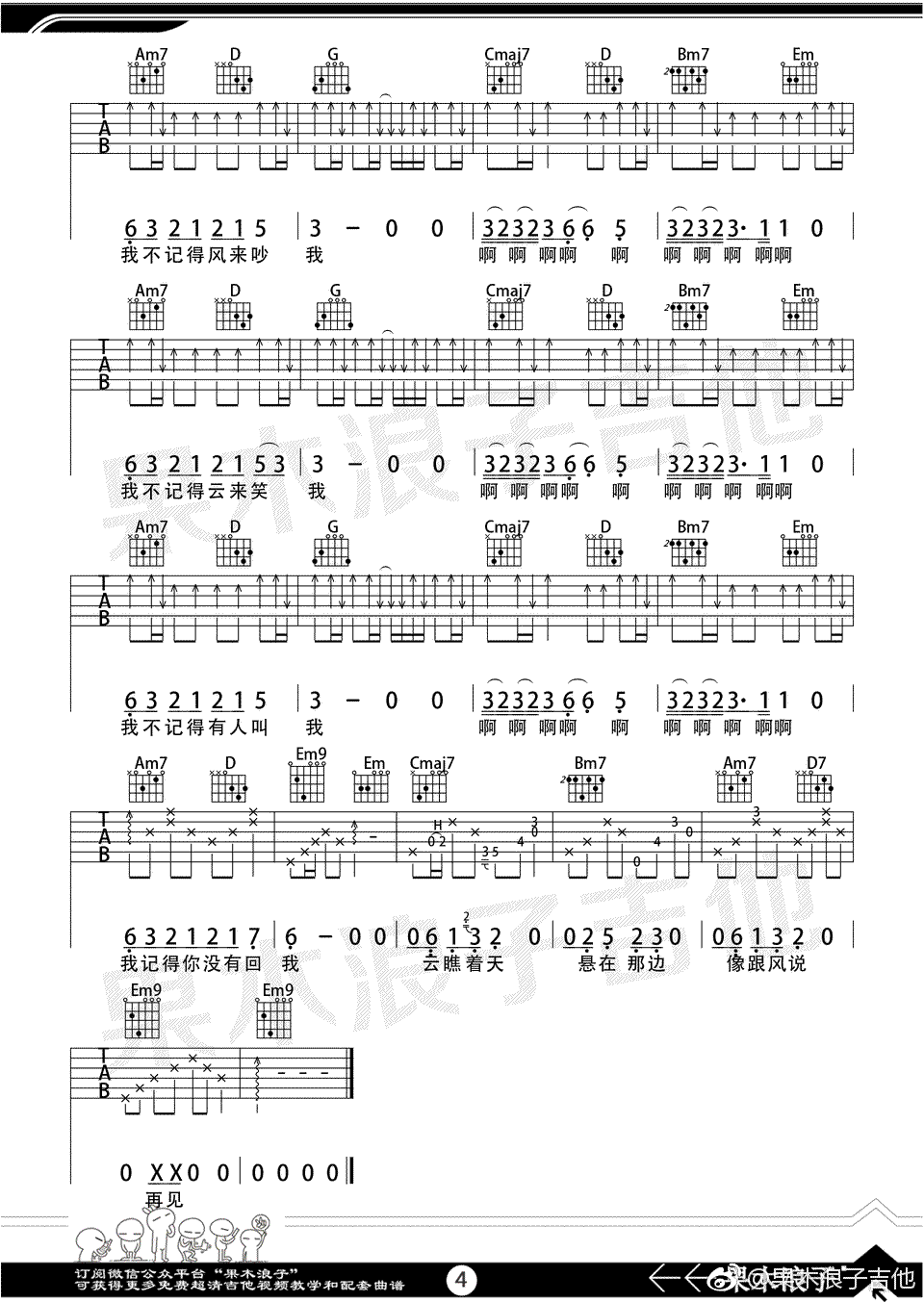 - 吴亦凡《从此以后》吉他谱 电影《夏有乔木雅望天堂》弹唱谱