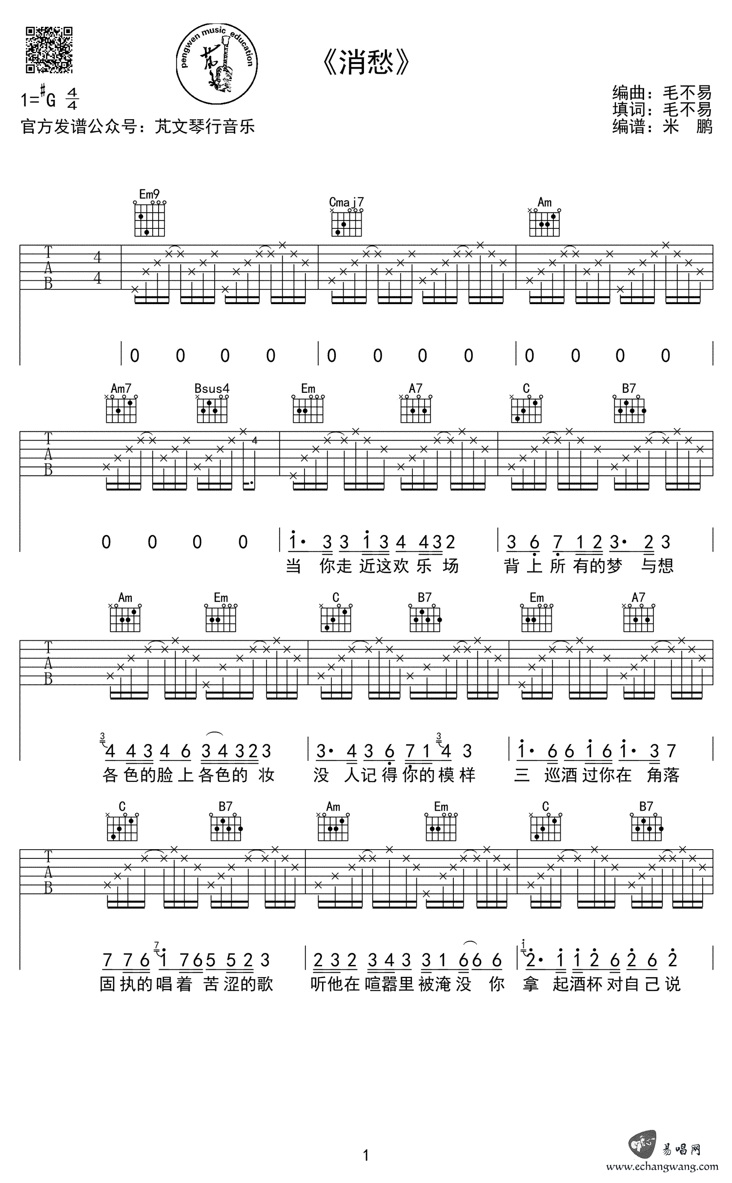 - 房东的猫《短叹》吉他谱 G调弹唱谱 原版六线谱