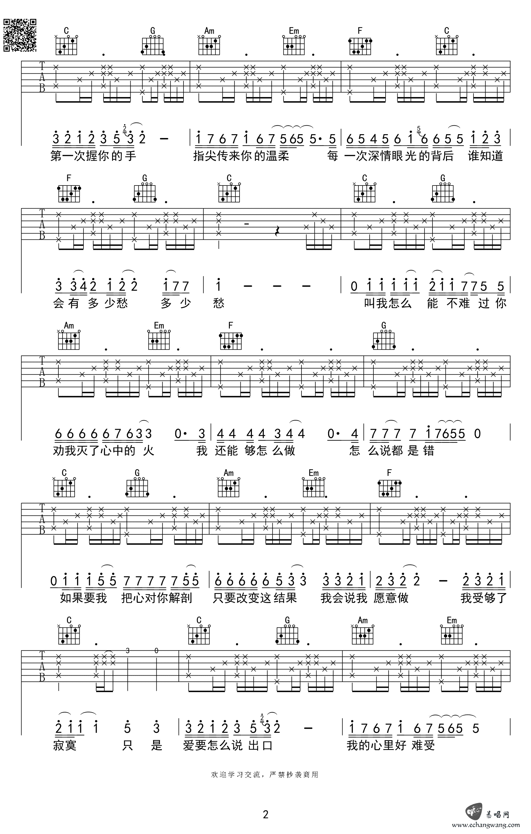 - 她说指弹谱 郑成河《她说》指弹吉他视频 高清图片谱