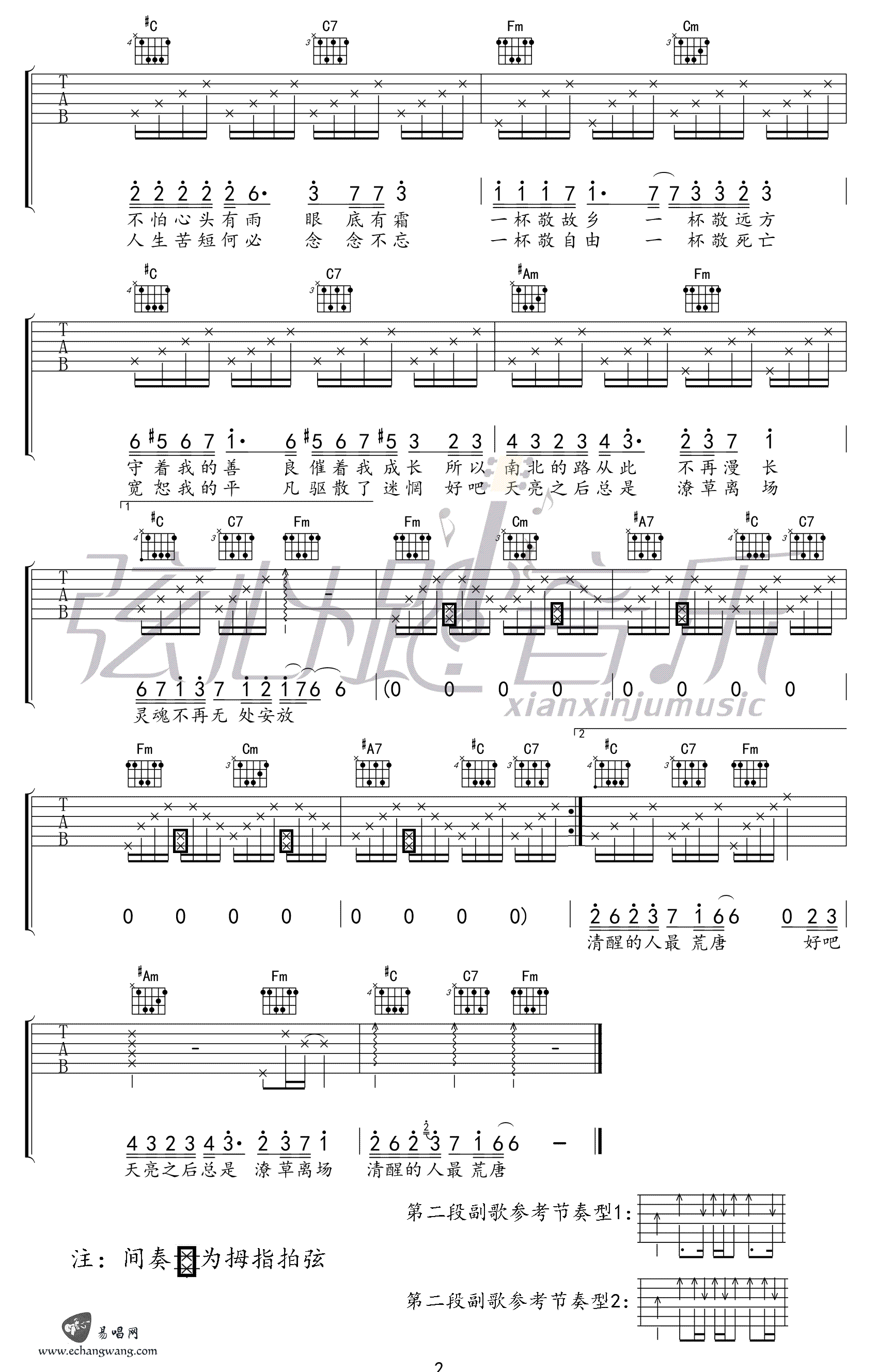 - 崔开潮《声声慢》吉他谱 C调弹唱谱 高清图片谱