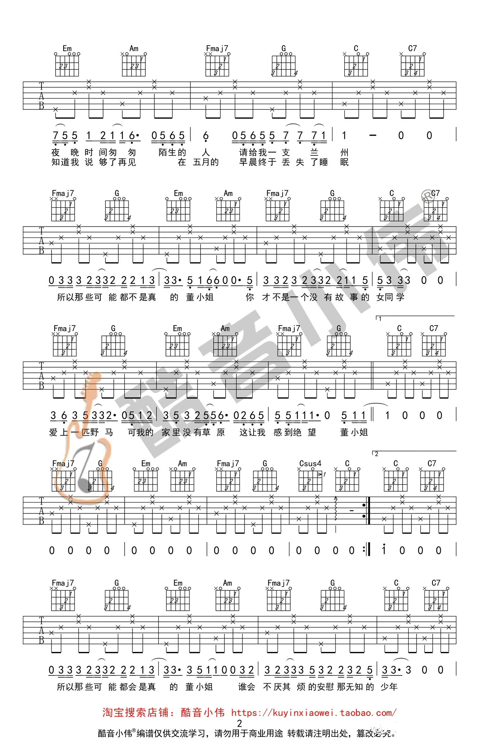 - 宋冬野《安和桥》吉他谱 G调高清版 六线谱