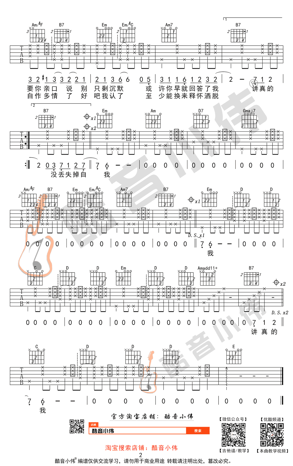 - 不仅仅是喜欢吉他谱 虎二版本 G调弹唱谱 吉他教学视频