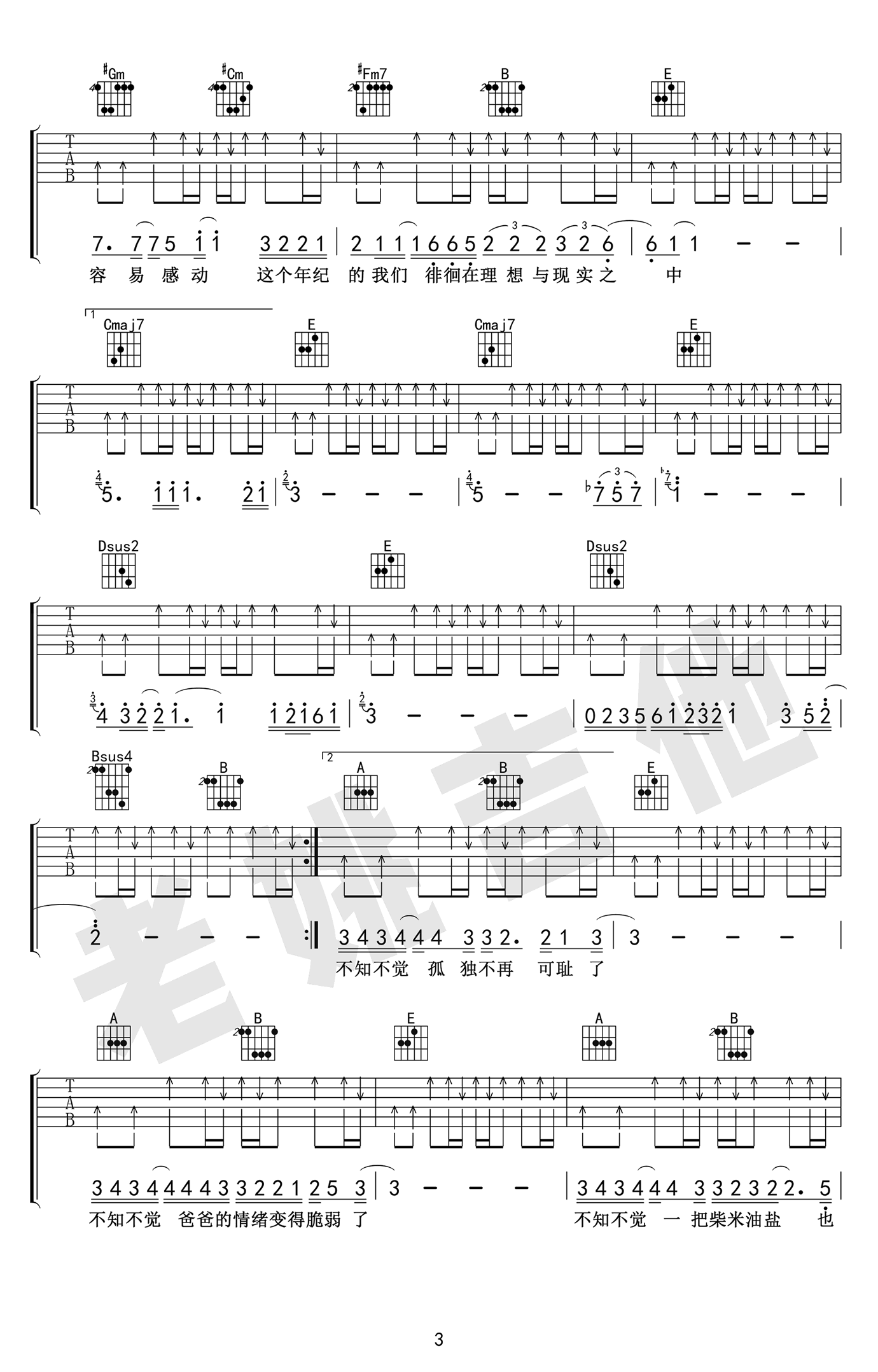 - 陈小姐的话吉他谱 我们的世界很民谣吉他谱 图片谱