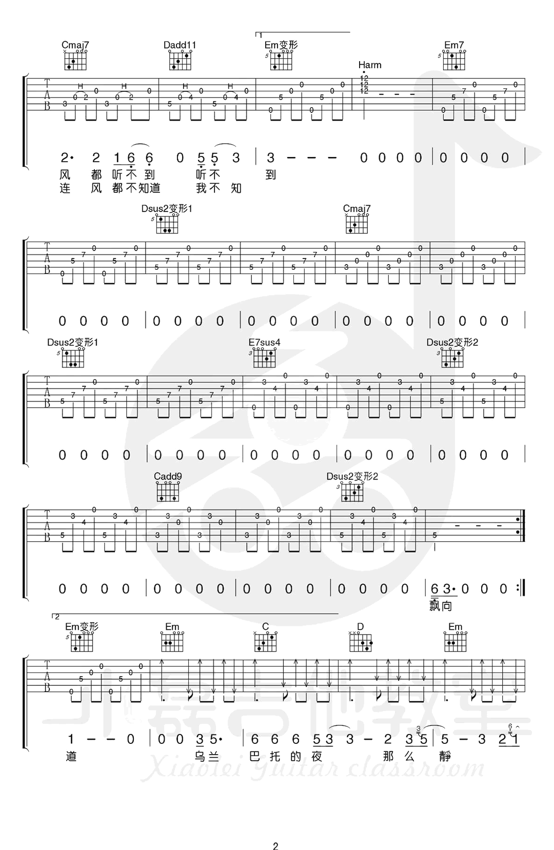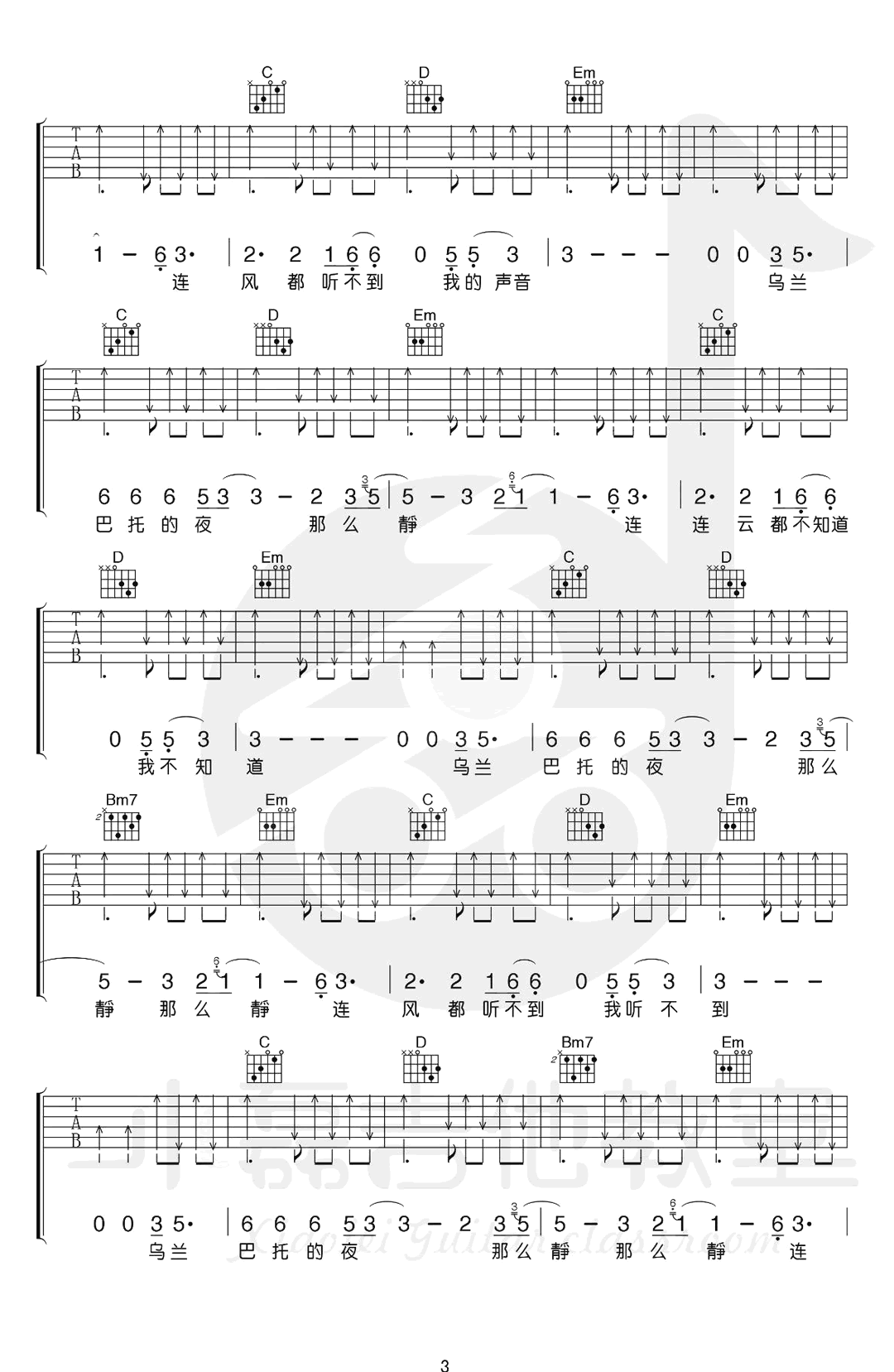 乌兰巴托的夜吉他谱,安来宁演唱版本,作词贾樟柯,作曲普日布道尔吉,一首蒙古风格的深沉动人的歌曲。《乌兰巴托的夜》吉他弹唱六线谱,选用G调指法,感谢小磊吉他的编配和提供的教学视频,易唱网推荐分享。