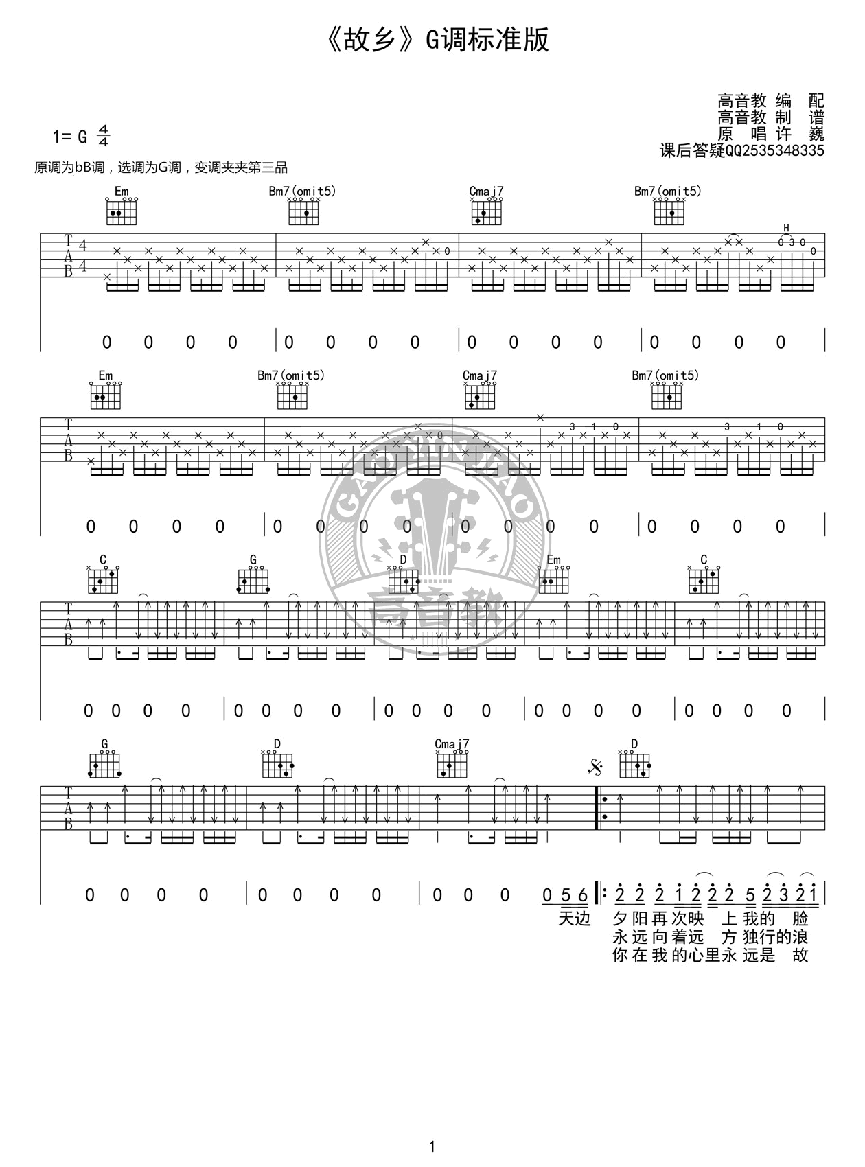 - 故乡弹唱谱 许巍 G调弹唱谱 《故乡》吉他教学视频