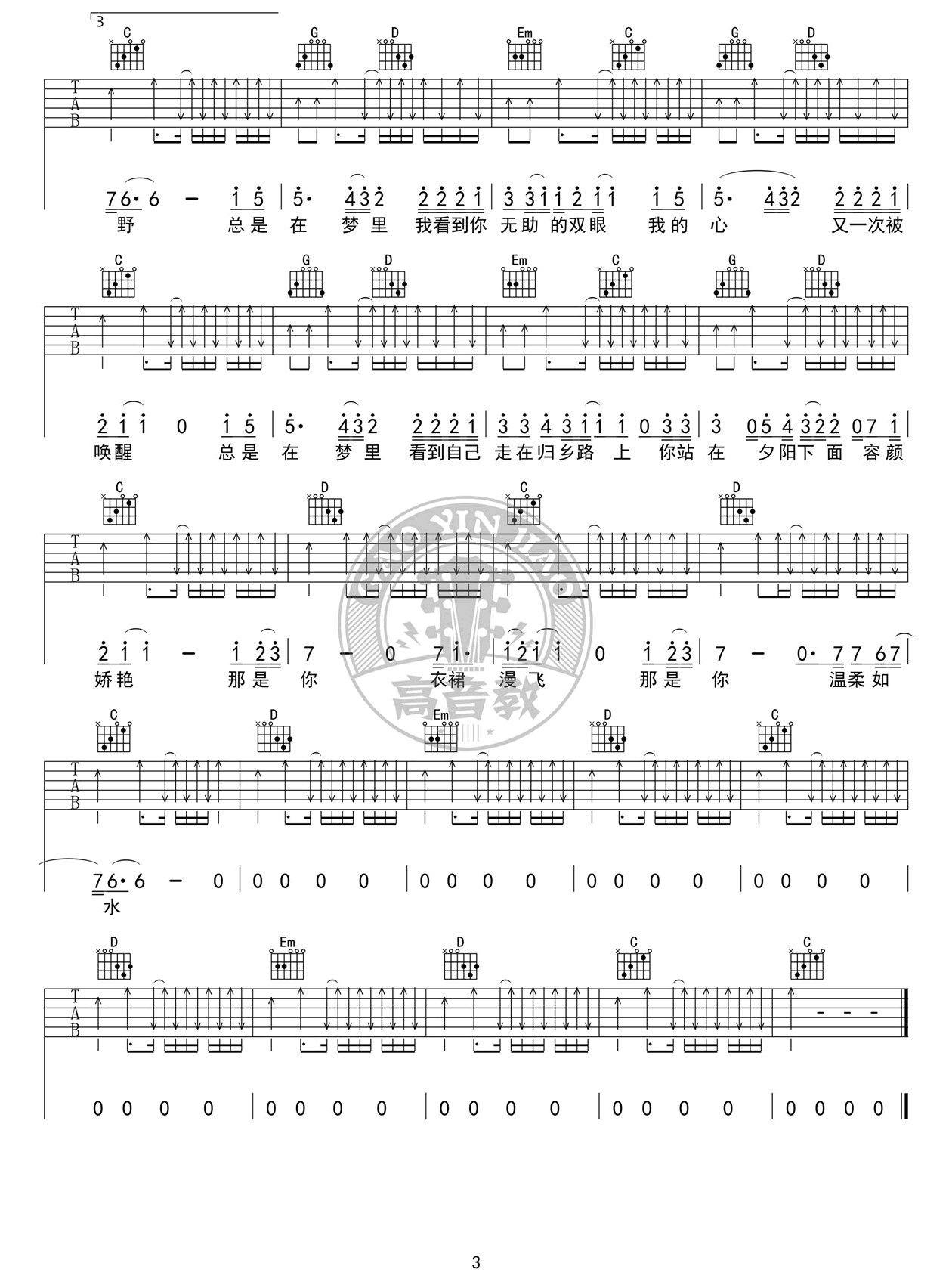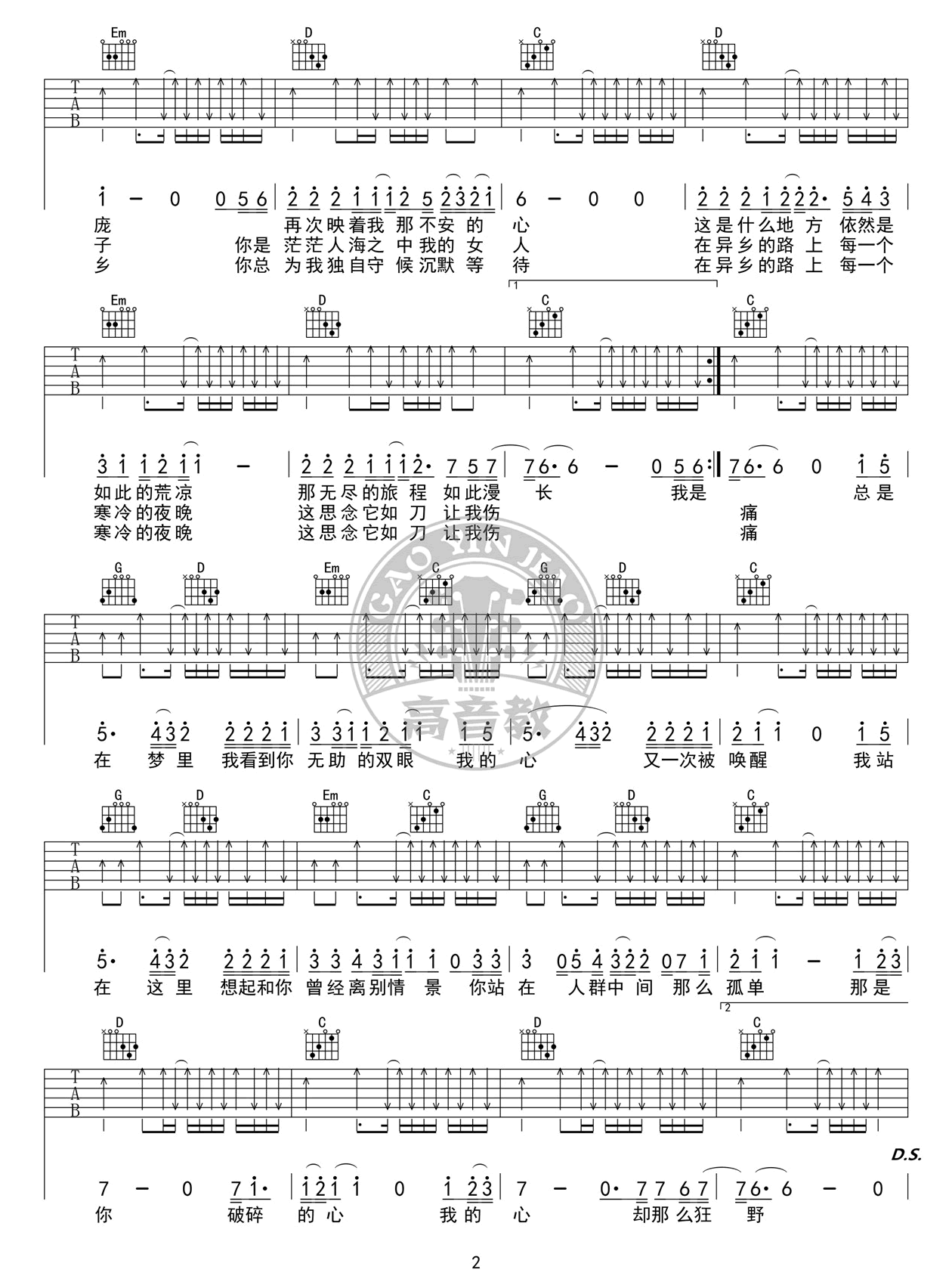 - 许巍《故乡》吉他谱_弹唱六线谱(图片谱高清版)