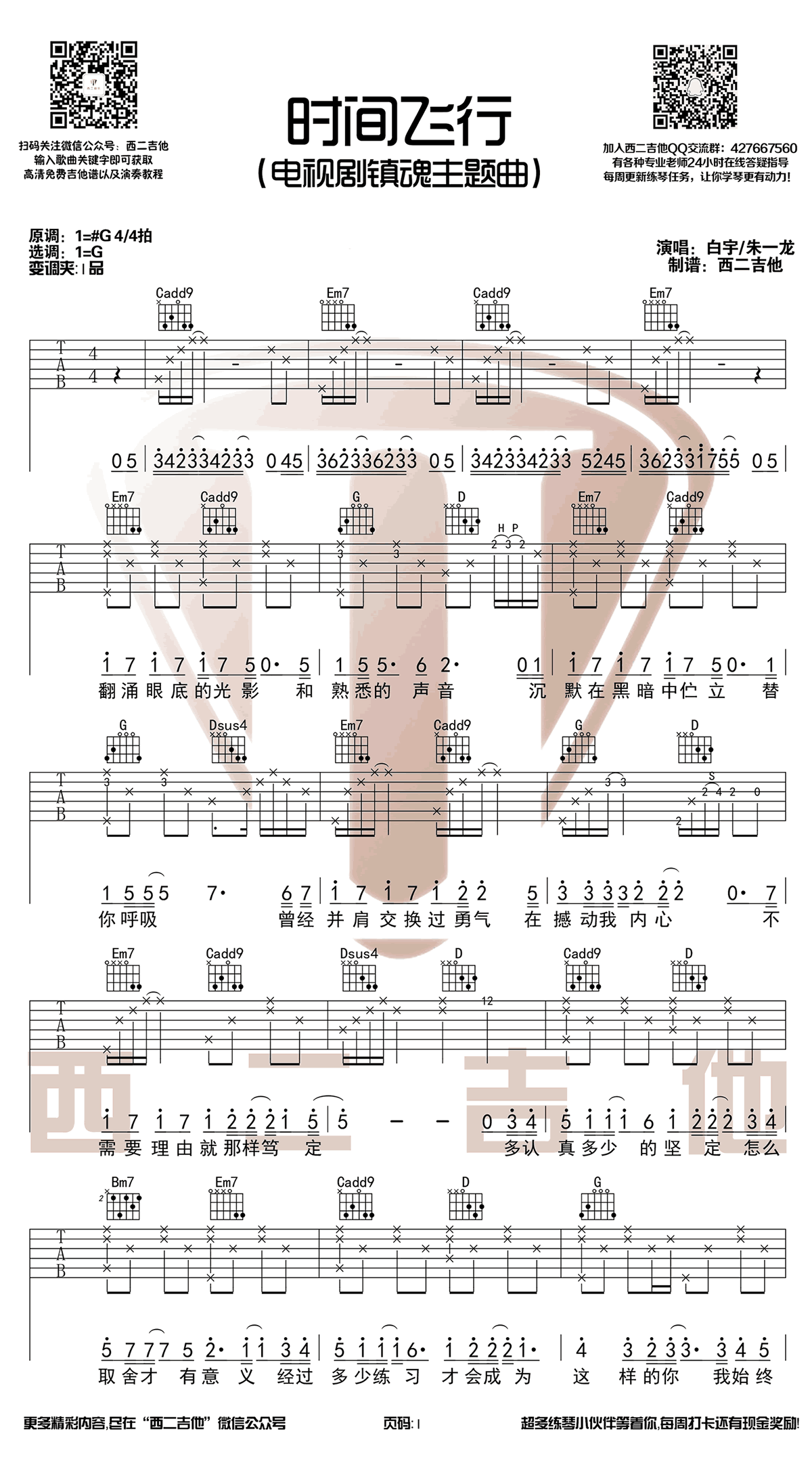 - 时间飞行吉他谱 网剧《镇魂》推广曲 白宇VS朱一龙