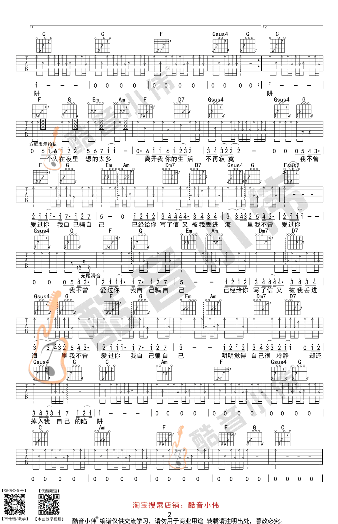 - 陈小姐的话吉他谱 C调指法 高清弹唱谱