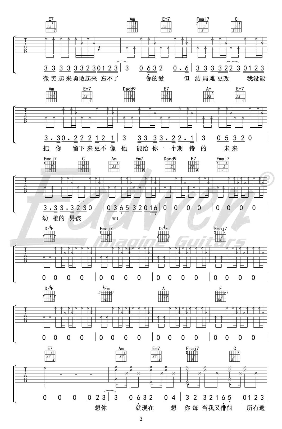 - 男孩吉他谱 梁博 C调弹唱谱 图片谱 吉他教学视频