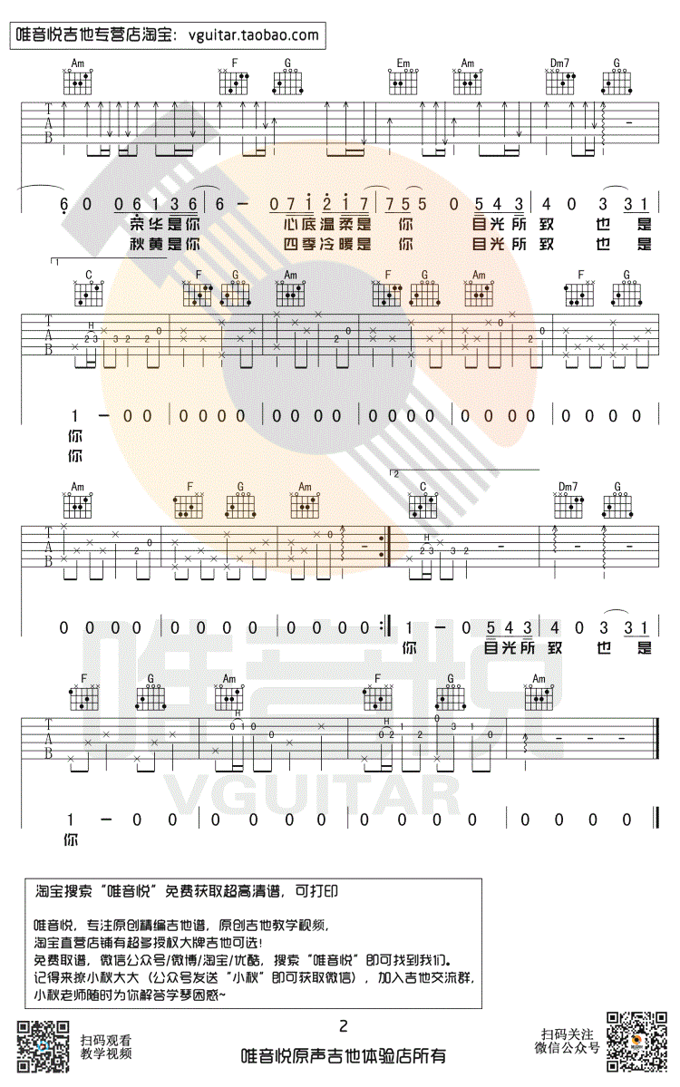 - 不仅仅是喜欢吉他谱 虎二版本 G调弹唱谱 吉他教学视频