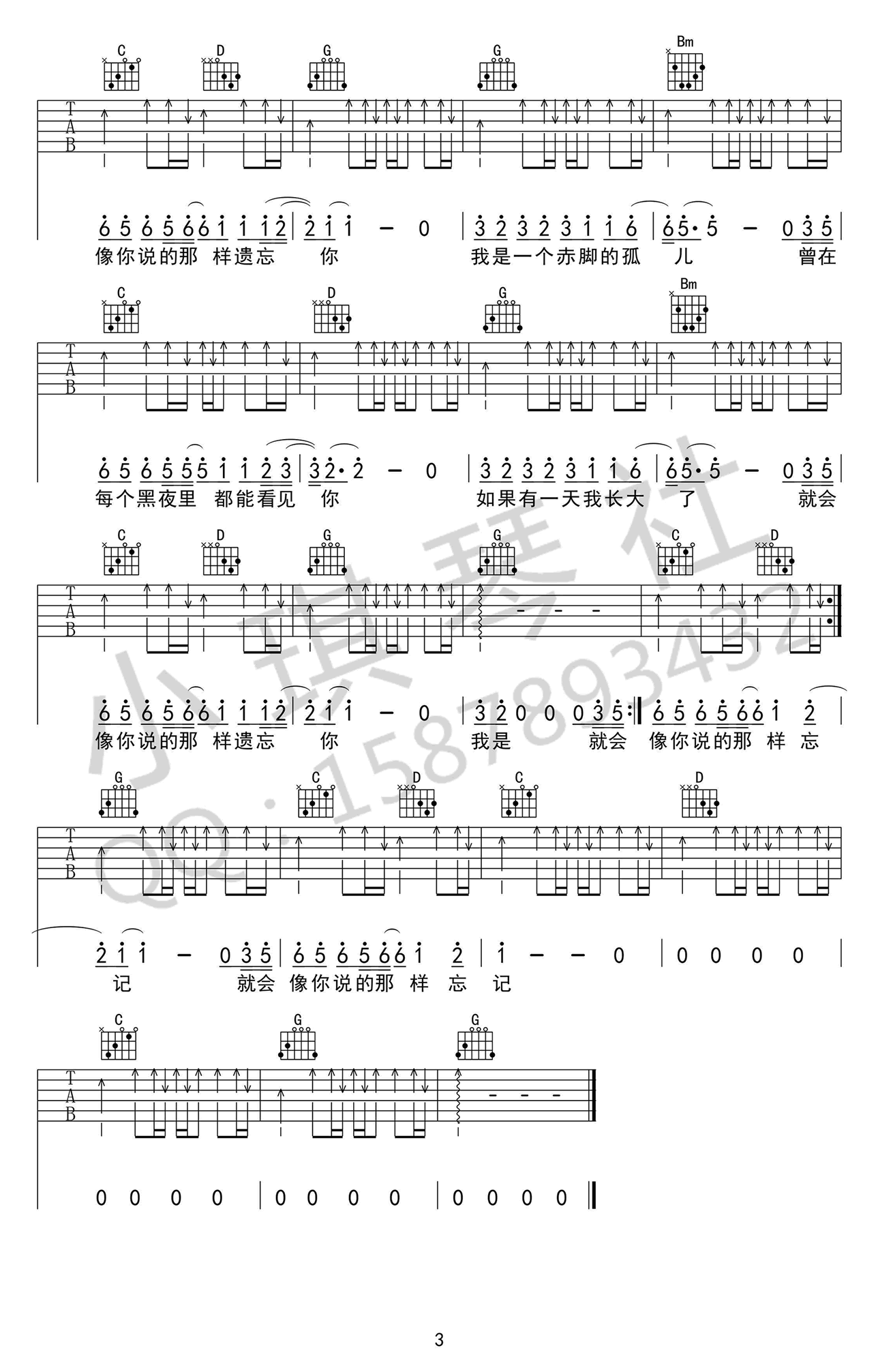 - 当我要走的时候吉他谱 陈硕子 C调指法 图片谱