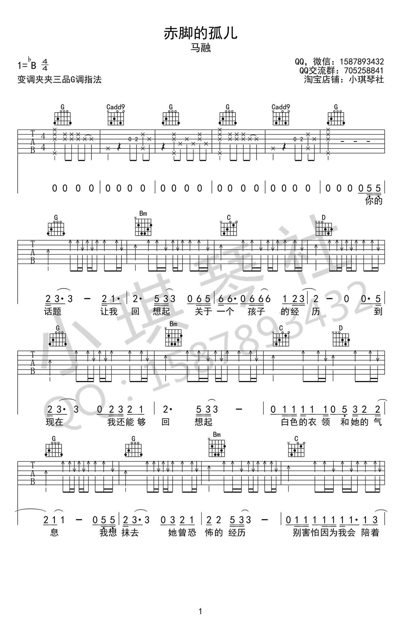- 一个人吉他谱 卢焱 G调六线谱 高清弹唱谱