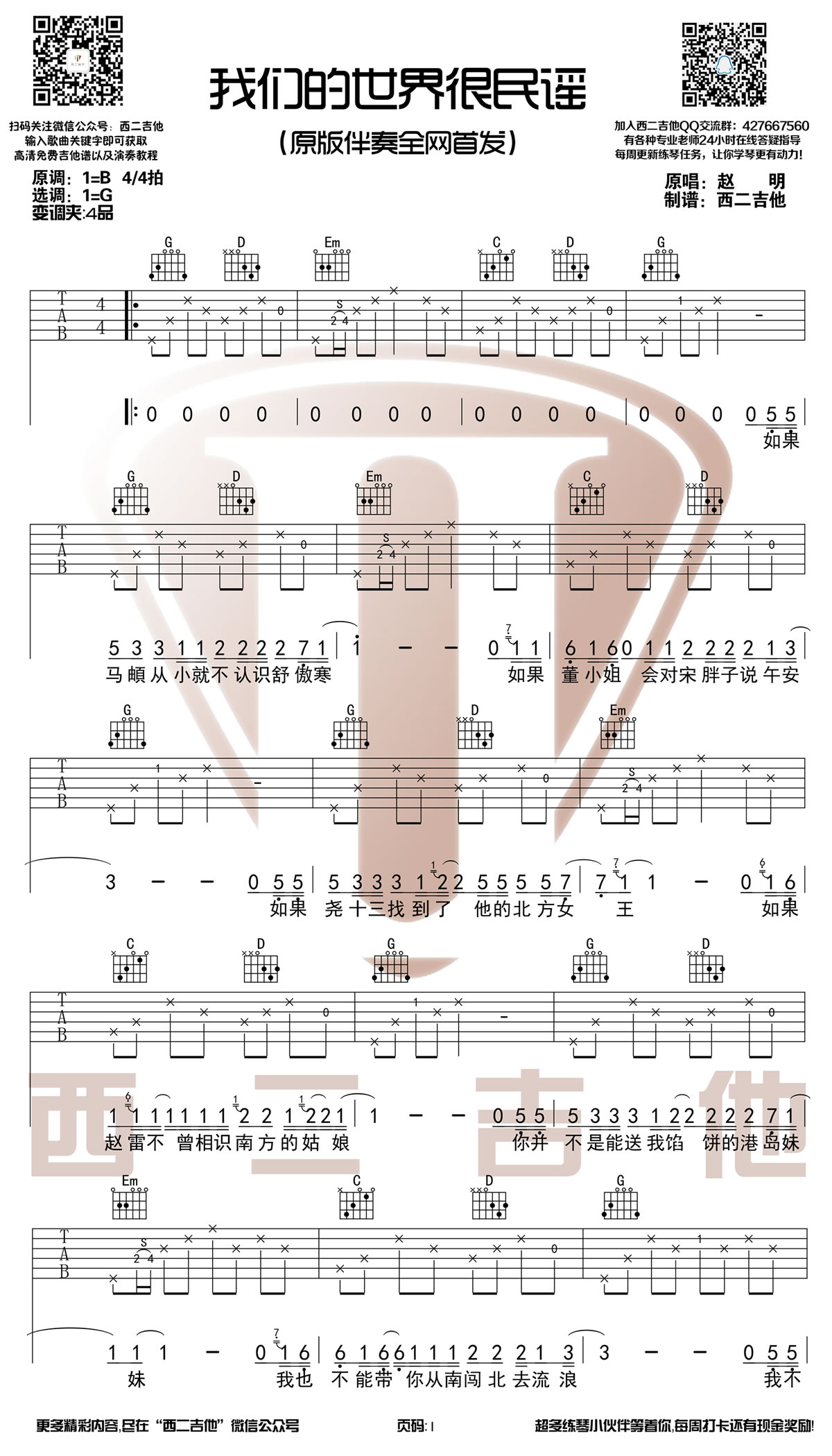 - 杨宗纬《我变了 我没变》吉他谱_G调六线谱