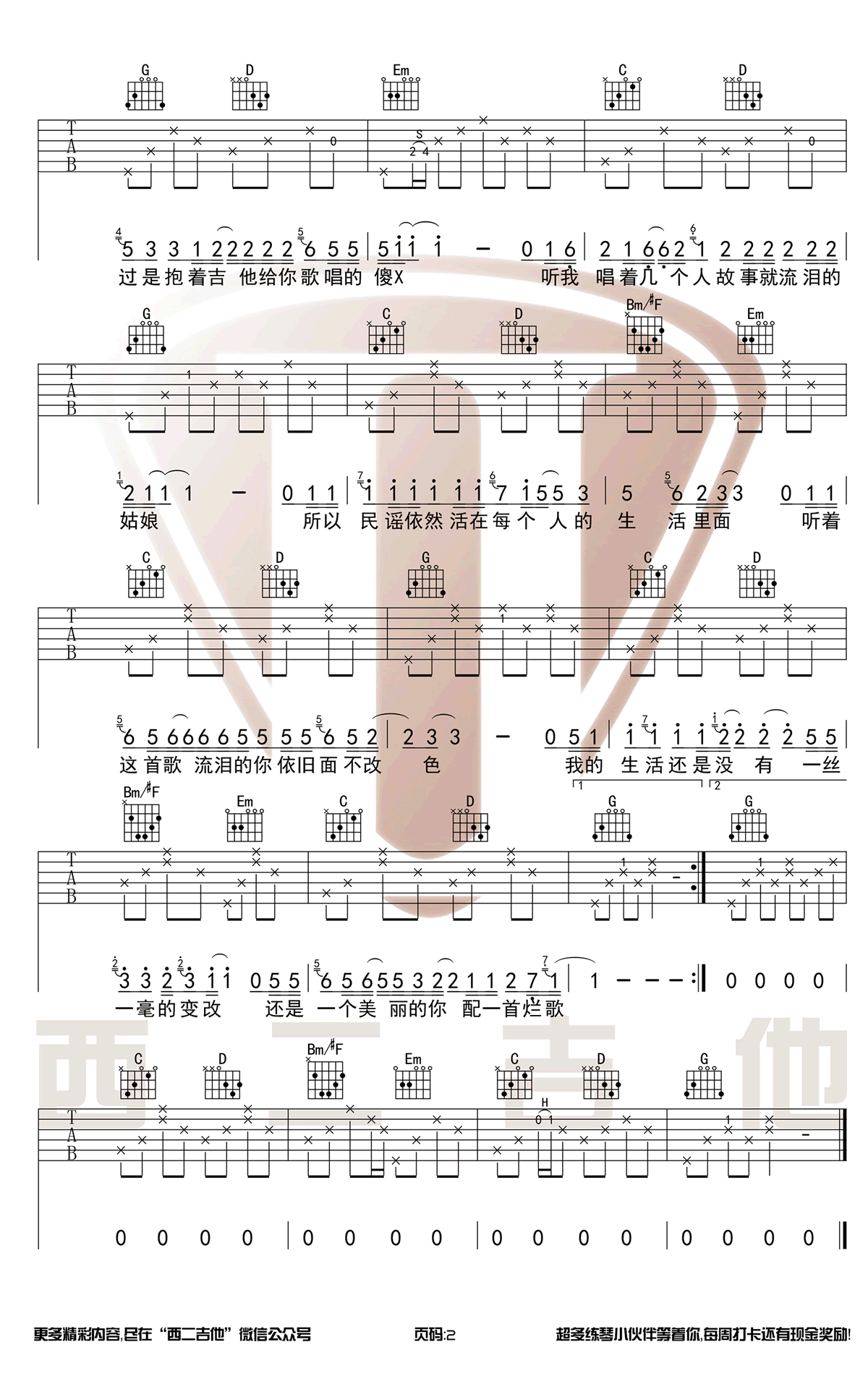 - 寻水的鱼吉他谱_许飞_弹唱谱高清版_图片谱