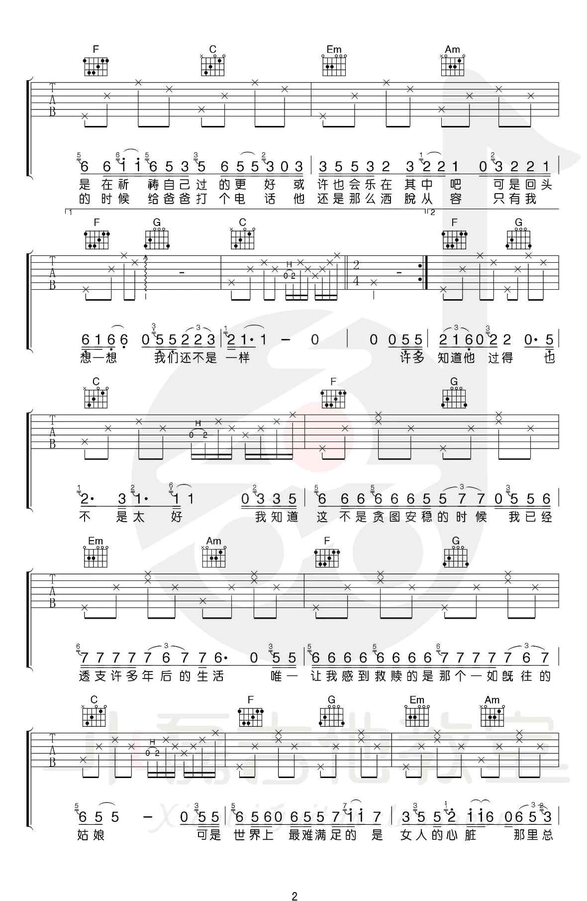 - 当我要走的时候吉他谱 陈硕子 C调指法 图片谱