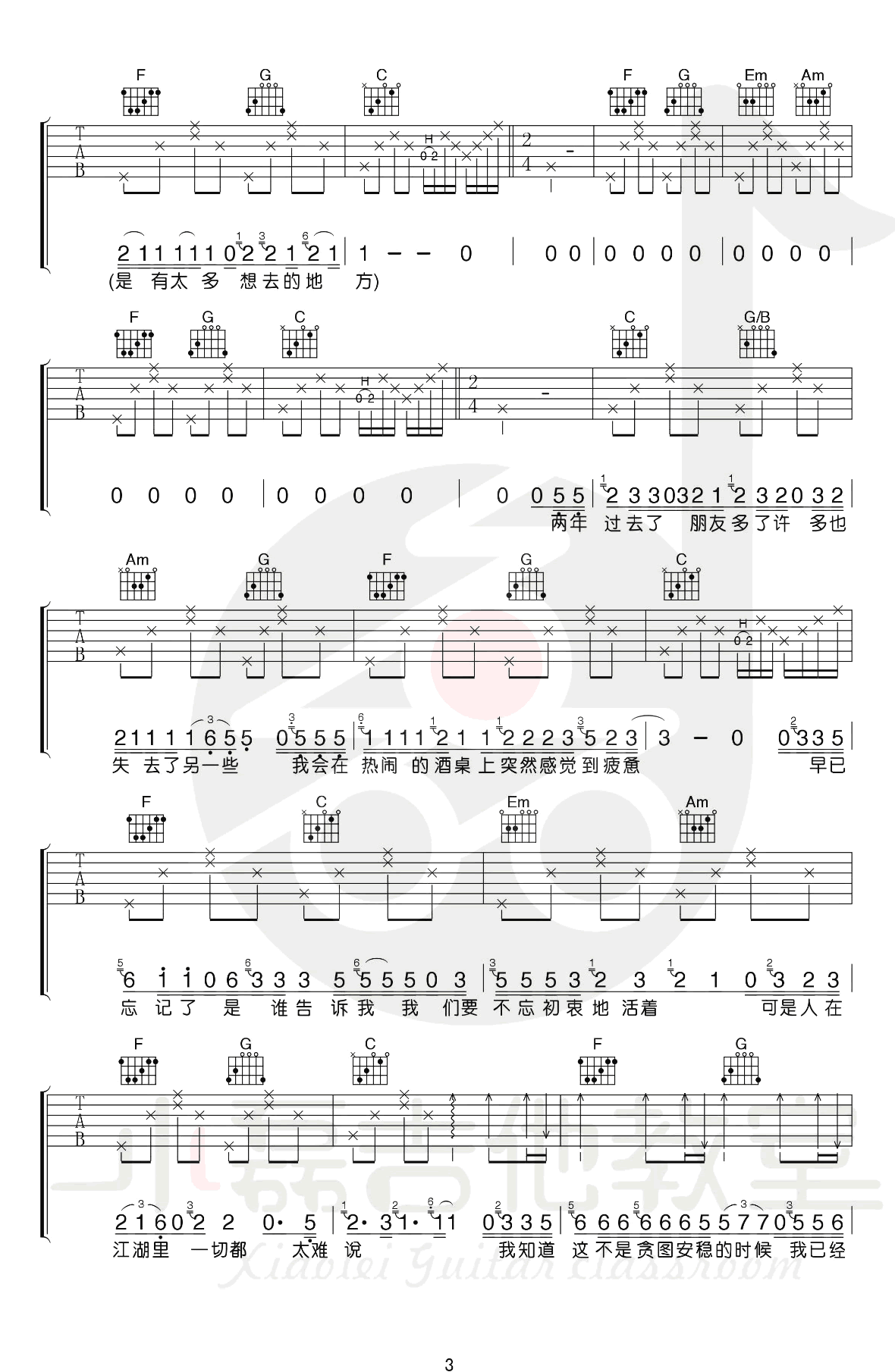 - 农夫渔夫吉他谱_小猛版本_吉他弹唱教学_图片谱