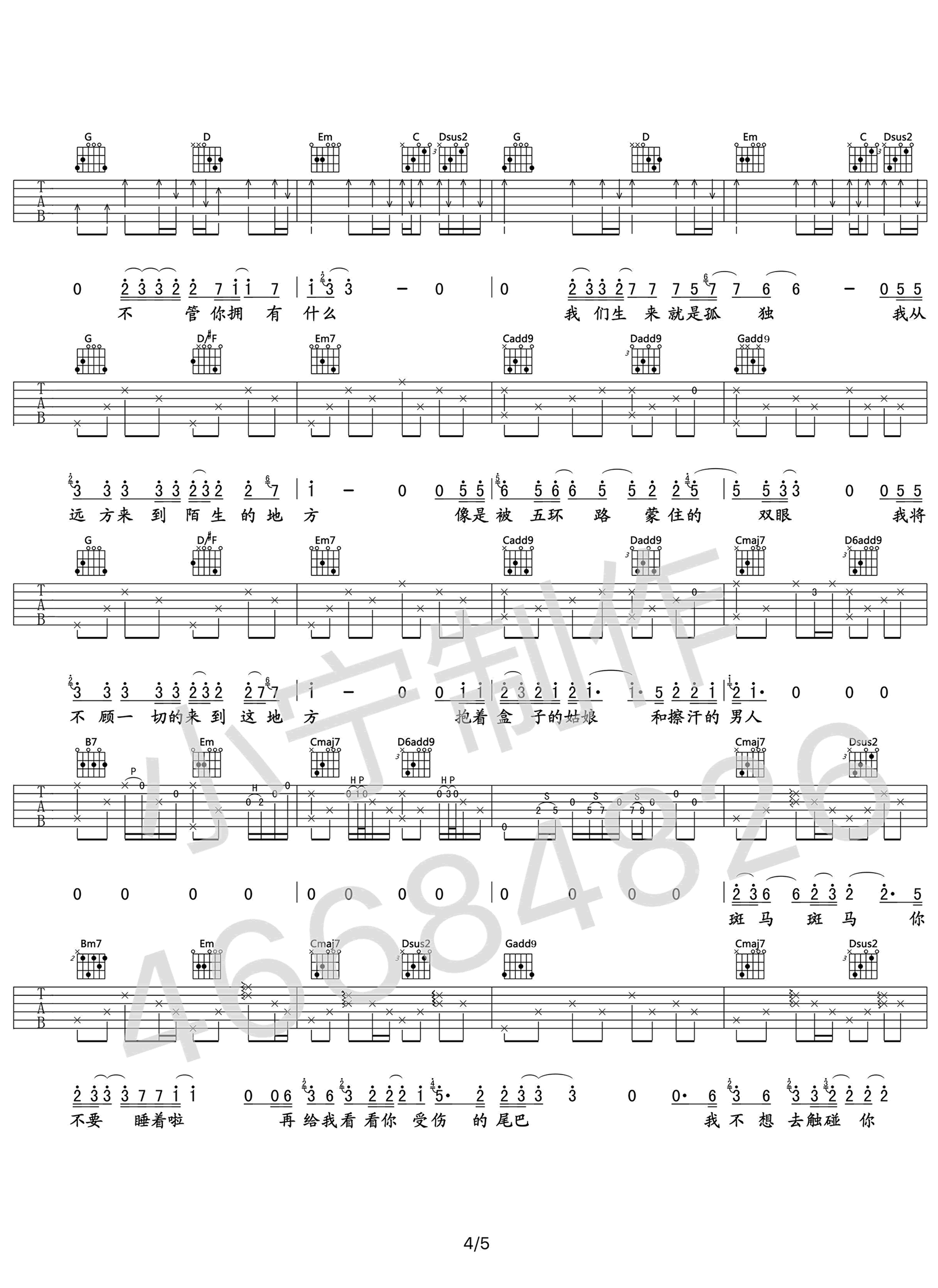 - 赤脚的孤儿吉他谱 马融 G调指法 高清弹唱谱