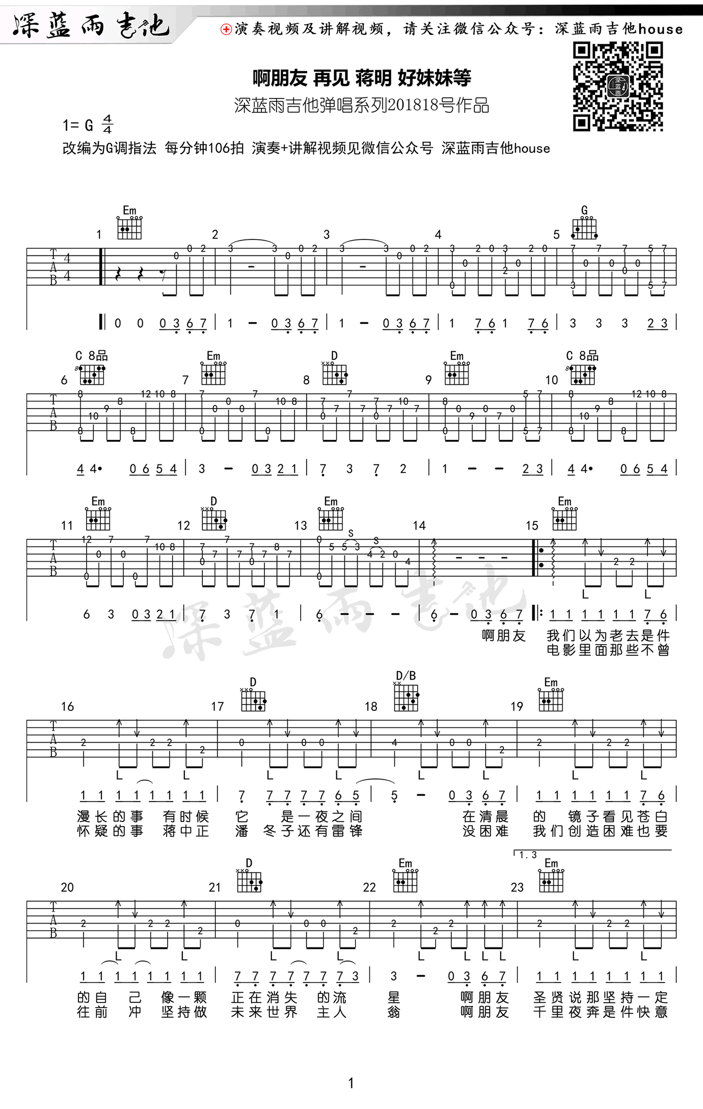 - 农夫渔夫吉他谱_小猛版本_吉他弹唱教学_图片谱