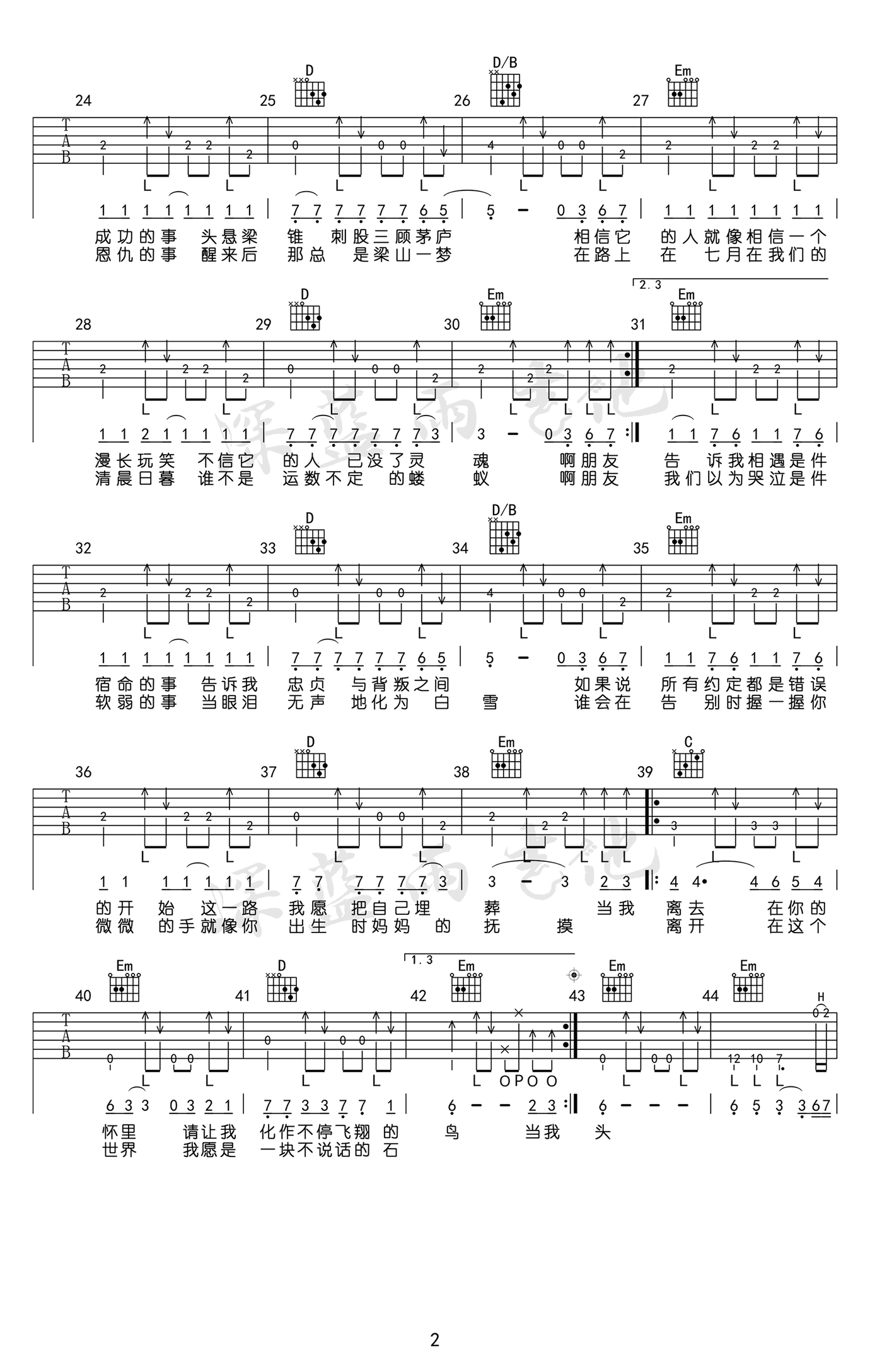 - 远走高飞吉他谱 金志文 原版六线谱 高清弹唱谱