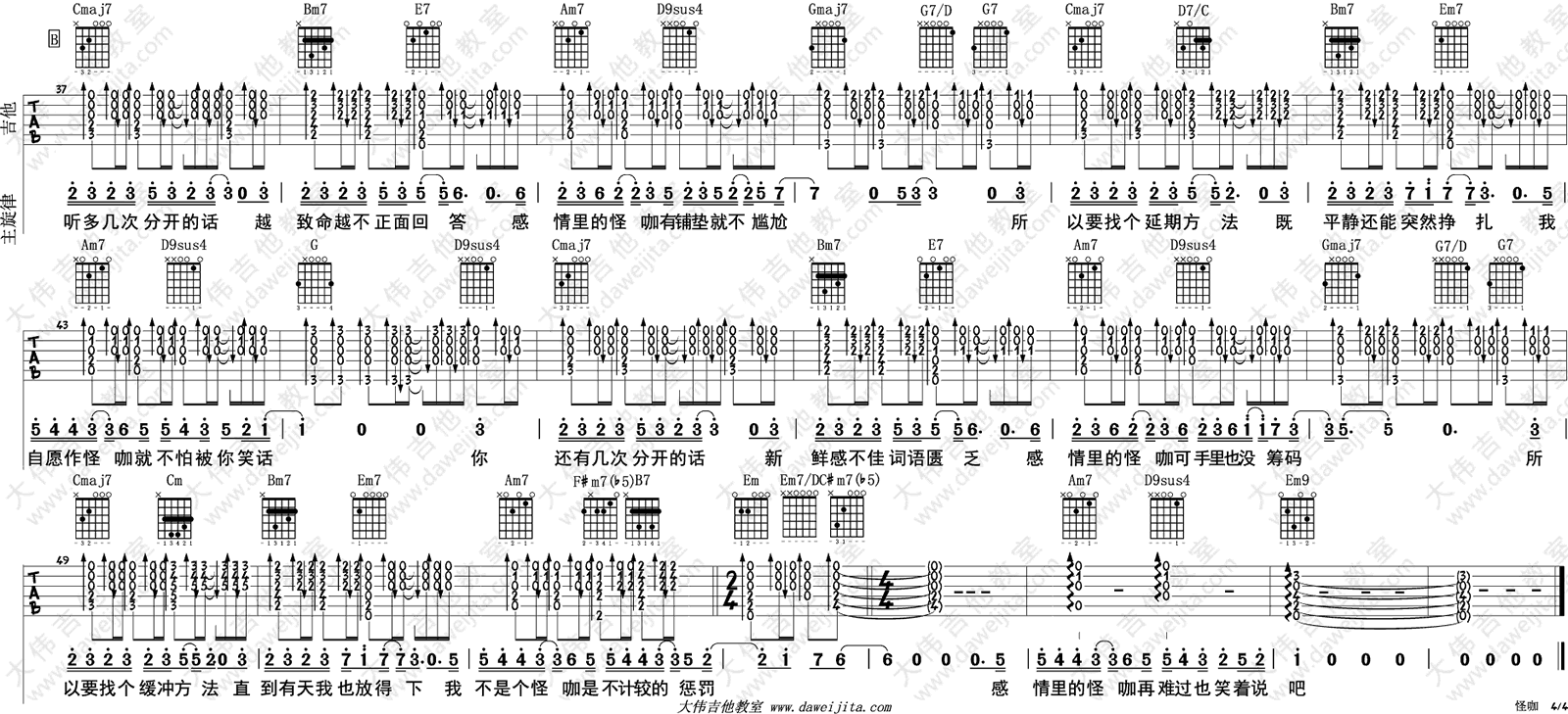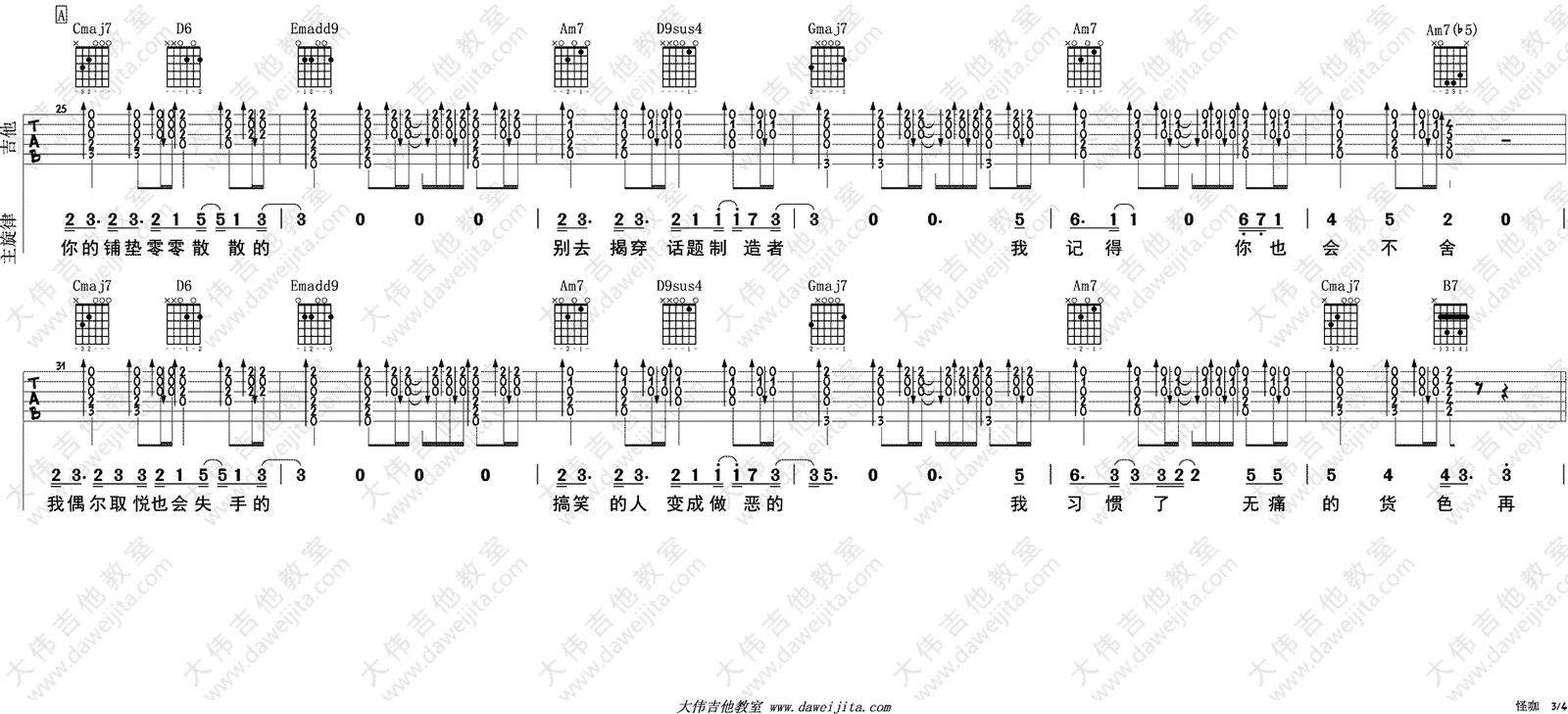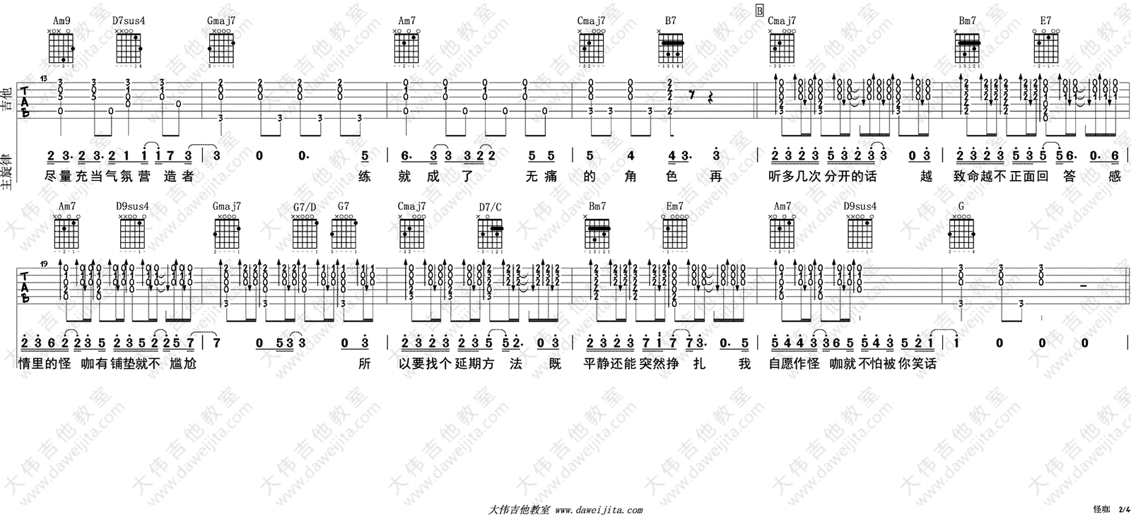 - 薛之谦《怪咖》吉他谱 A调指法 吉他弹唱示范