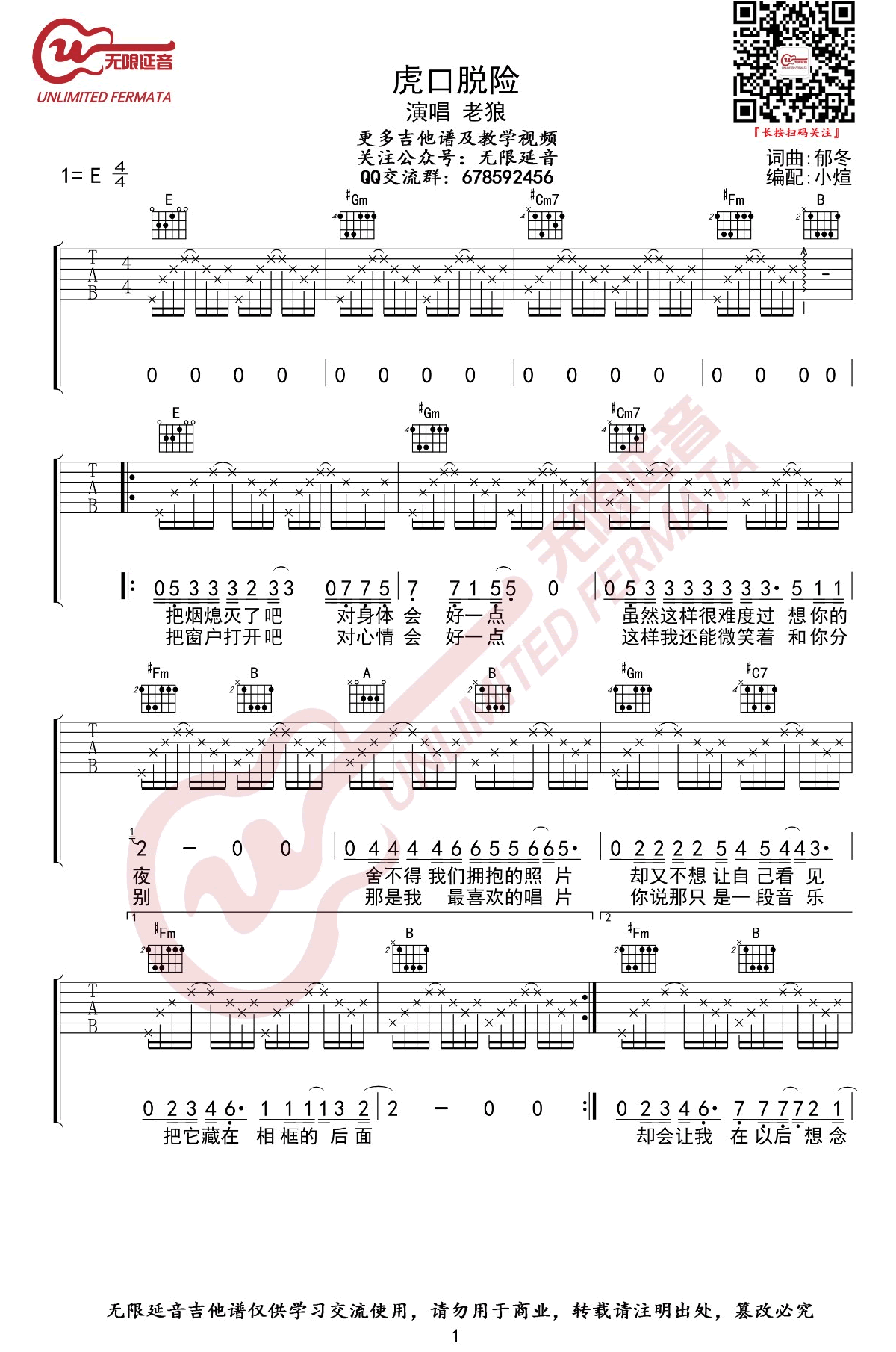 - 老狼《虎口脱险》吉他谱_E调弹唱谱_图片谱