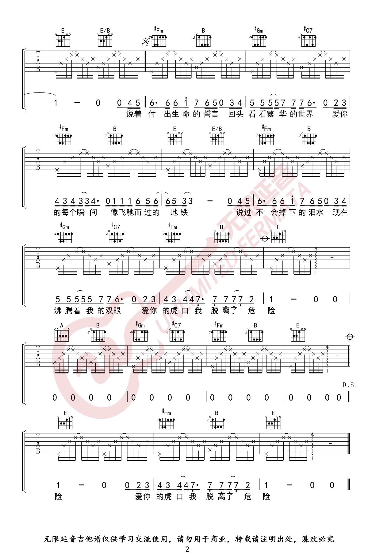 - 虎口脱险吉他谱 张磊版本 虎口脱险六线谱 图片谱