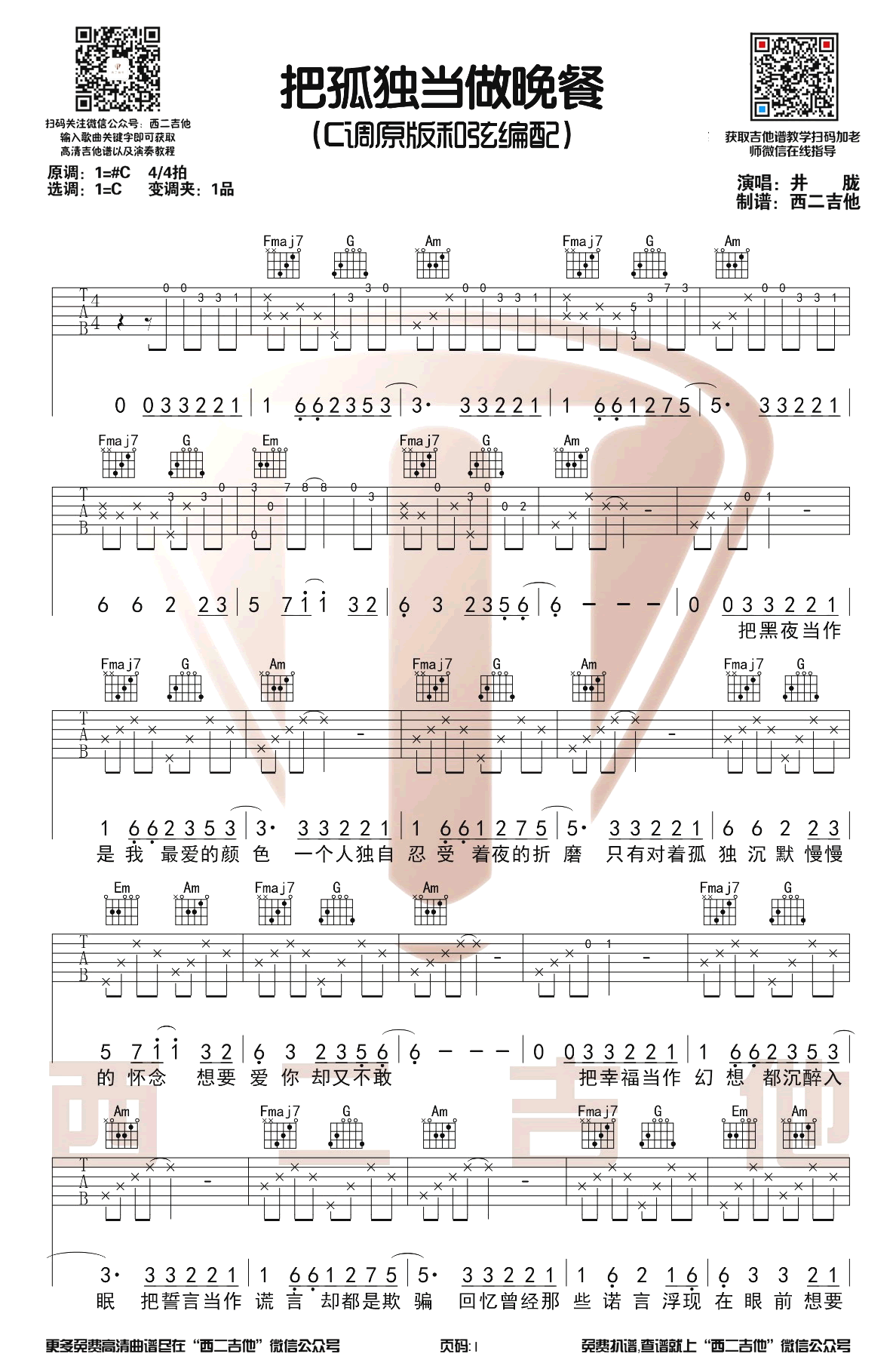 井胧《把孤独当做晚餐》吉他谱-1井胧《把孤独当做晚餐》吉他谱-2井胧《把孤独当做晚餐》吉他谱-3