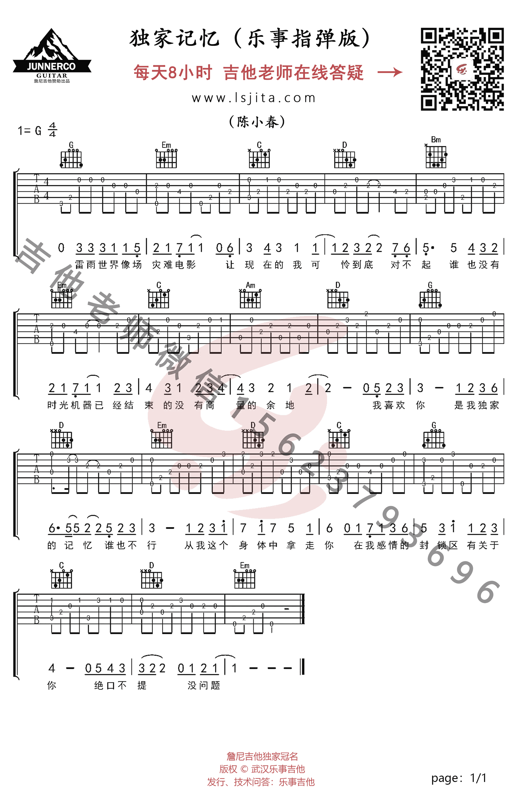 - 独家记忆指弹谱_陈小春_吉他独奏谱_简单指弹教学