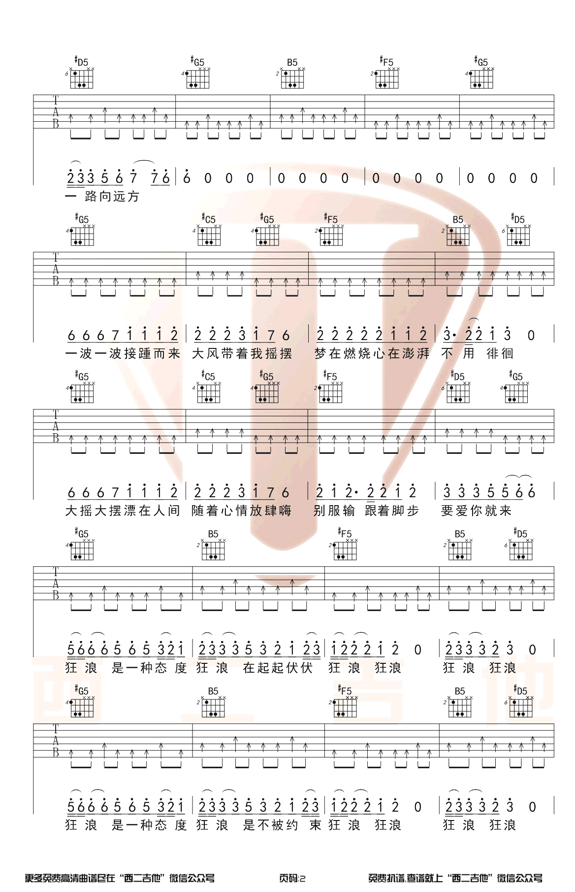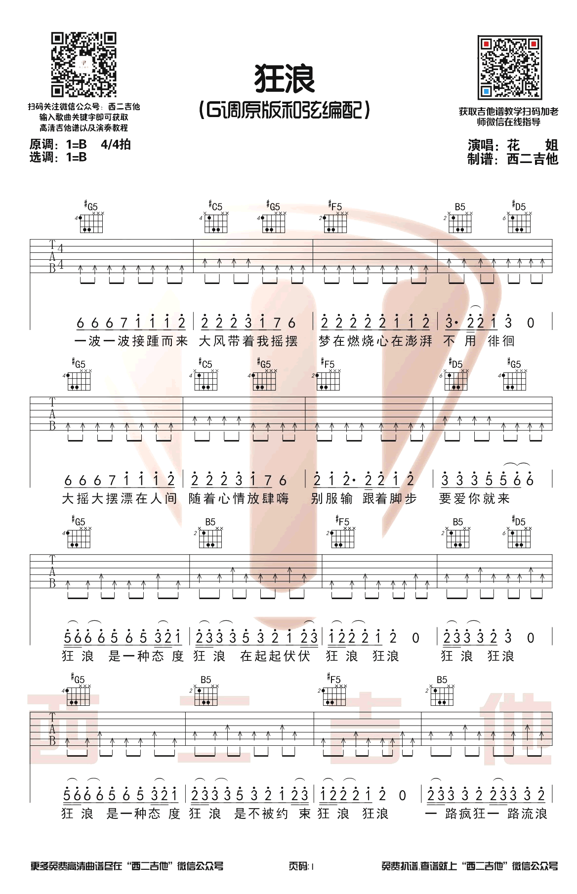 - 狂浪吉他谱_花姐_原版六线谱_狂浪吉他演示视频