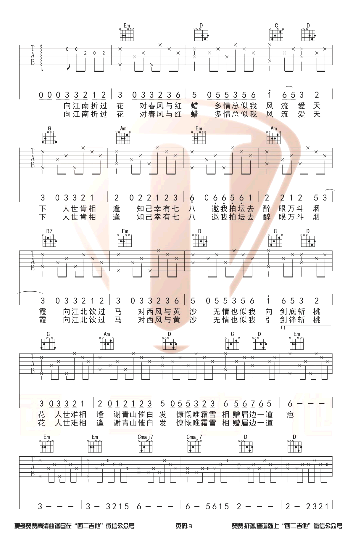 - 狂浪吉他谱_花姐_原版六线谱_狂浪吉他演示视频