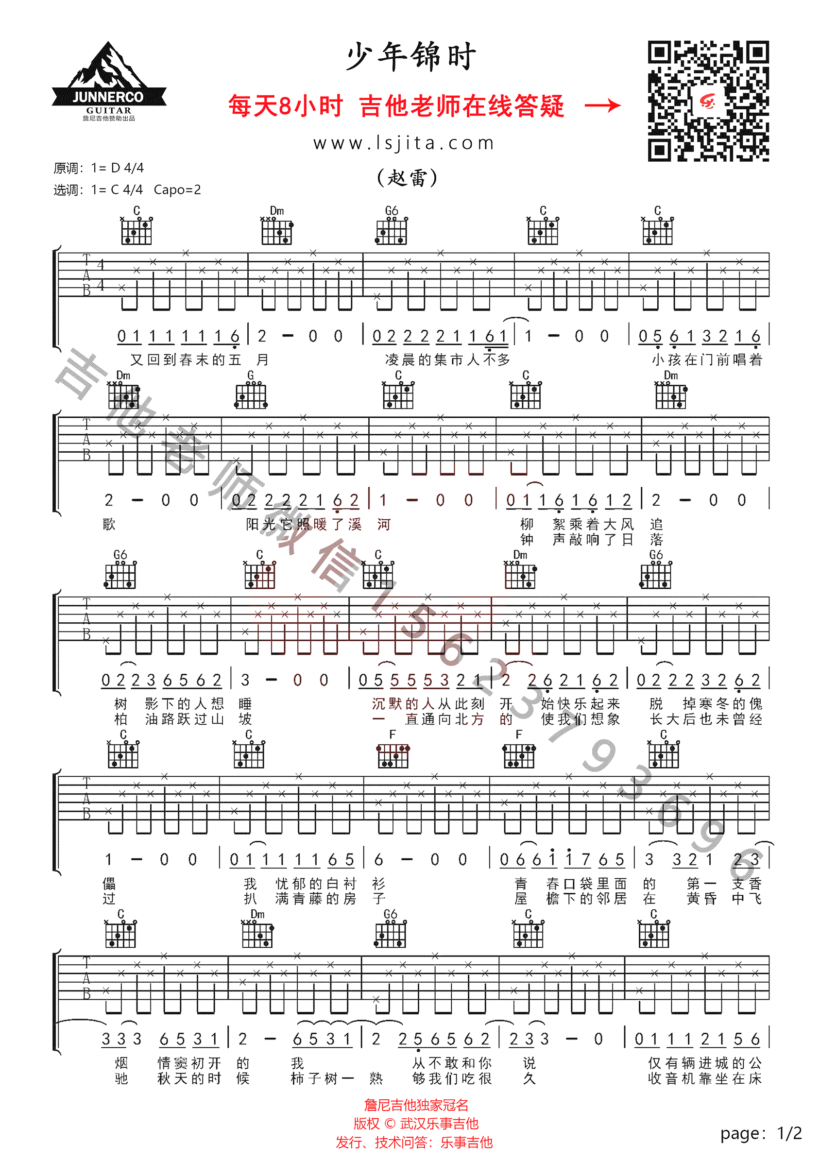 - 少年锦时吉他谱_赵雷_C调指法_原版弹唱谱