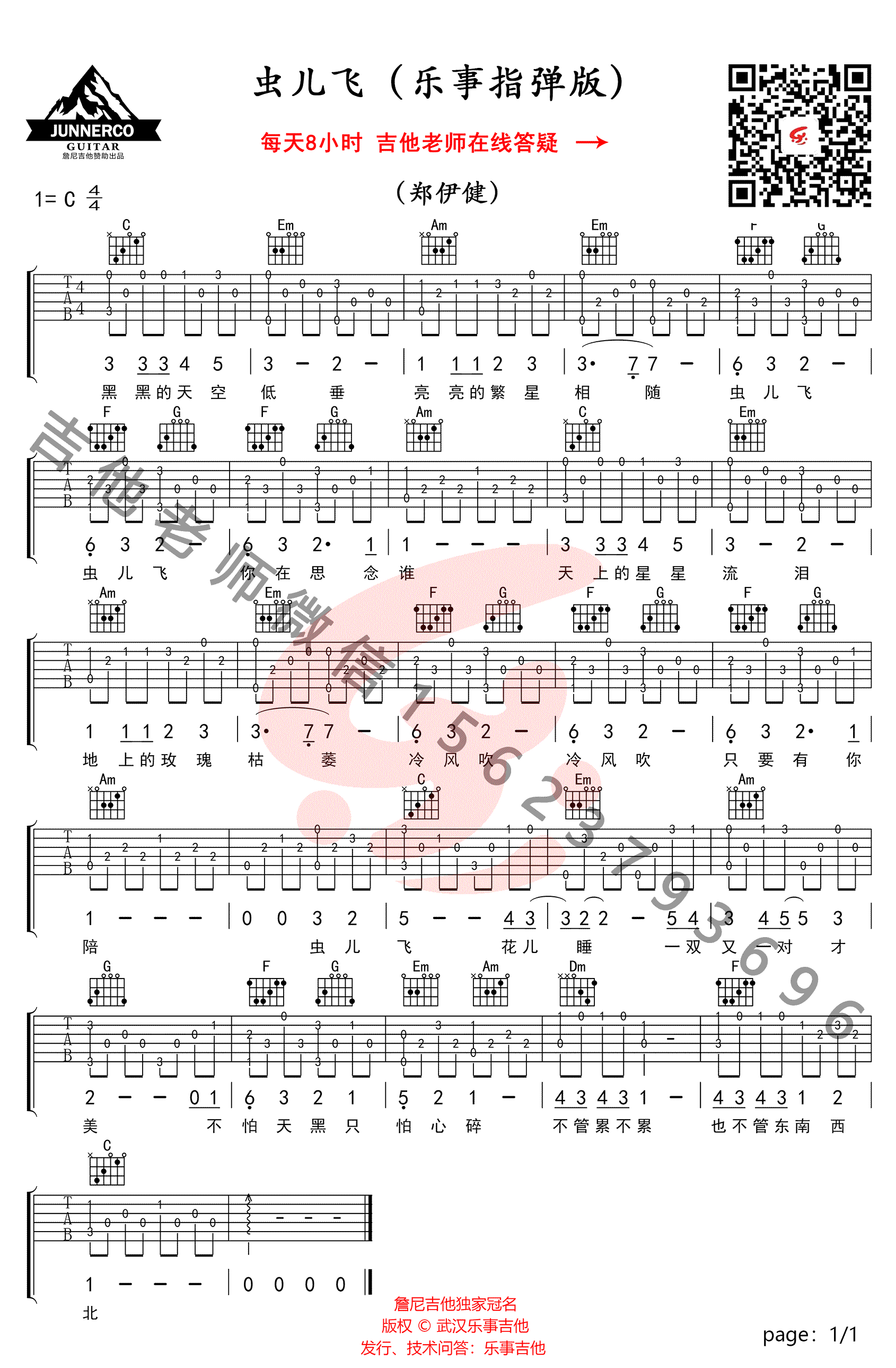 - 虫儿飞指弹谱_郑伊健_C调_吉他必学_指弹教学视频