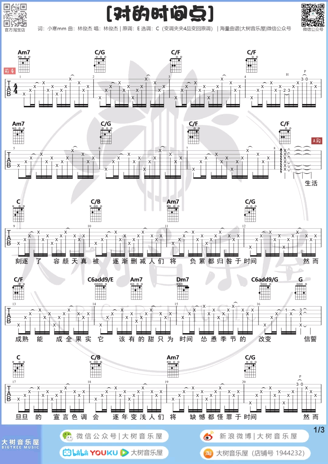 - 对的时间点吉他谱_林俊杰_C调和弦_弹唱六线谱