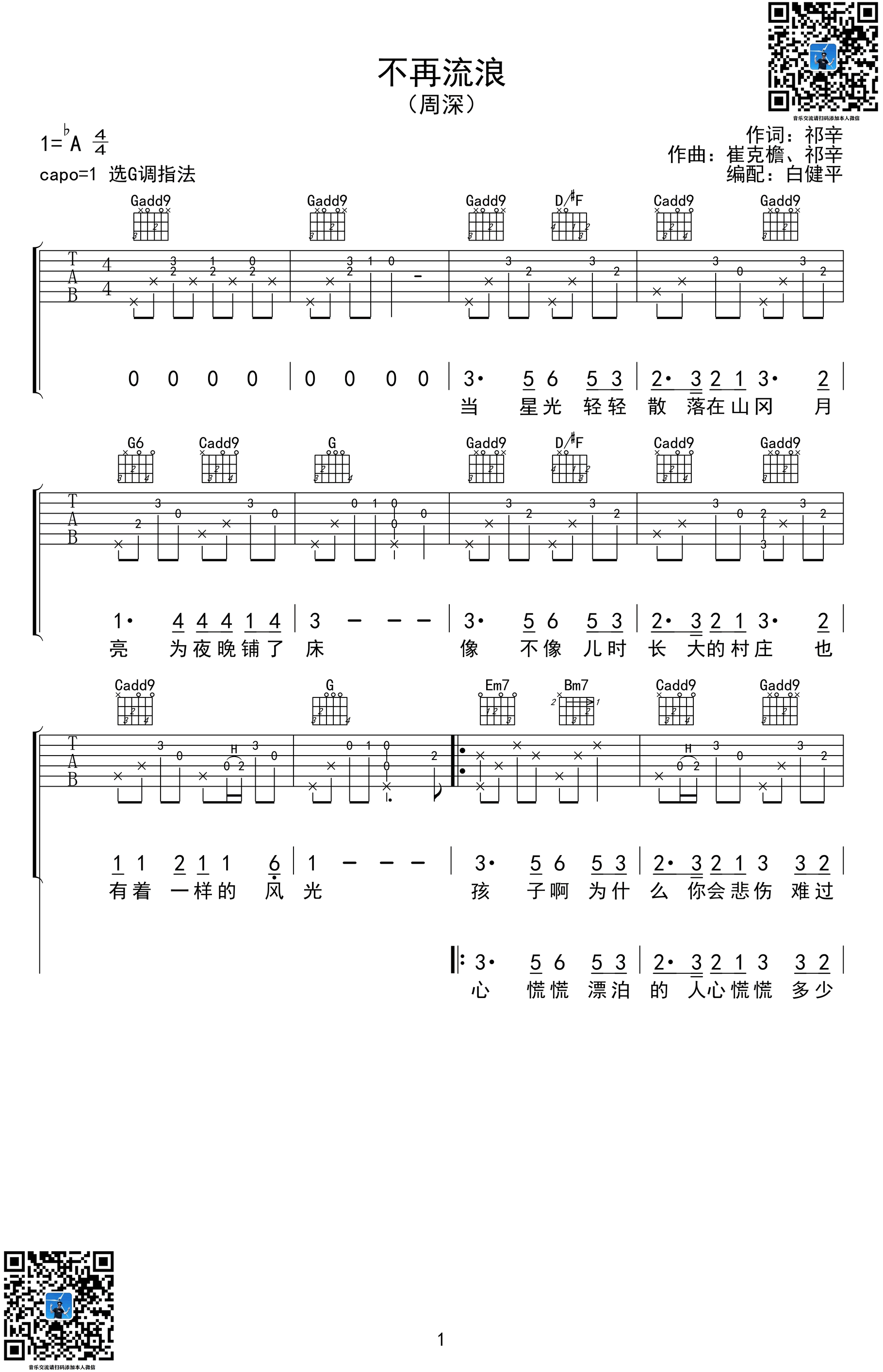 - 不再流浪吉他谱_周深《罗小黑战记》推广曲_G调弹唱谱
