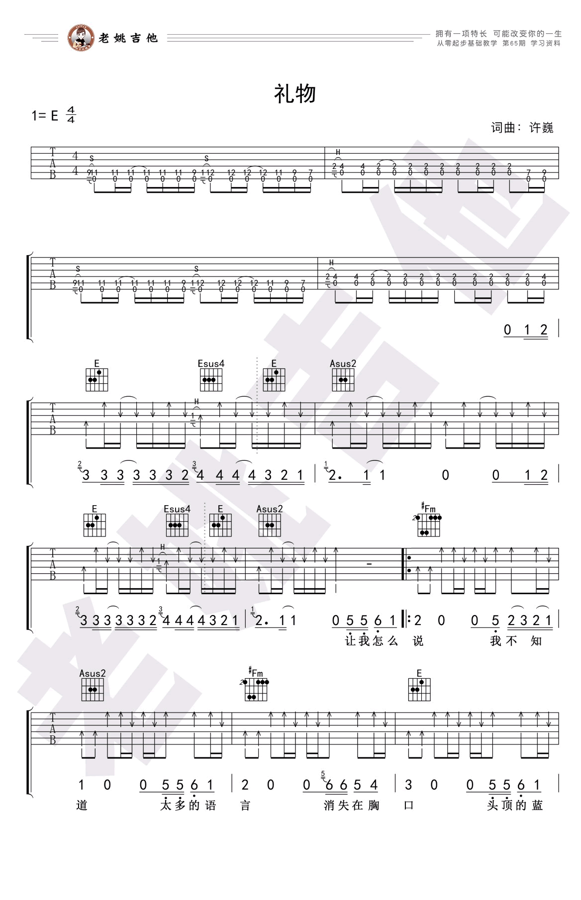 - 礼物吉他谱_许巍_E调原版_吉他教学视频