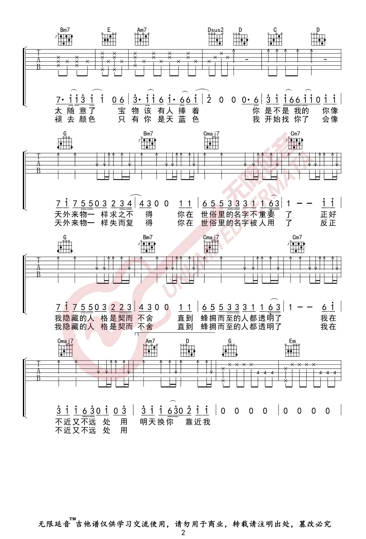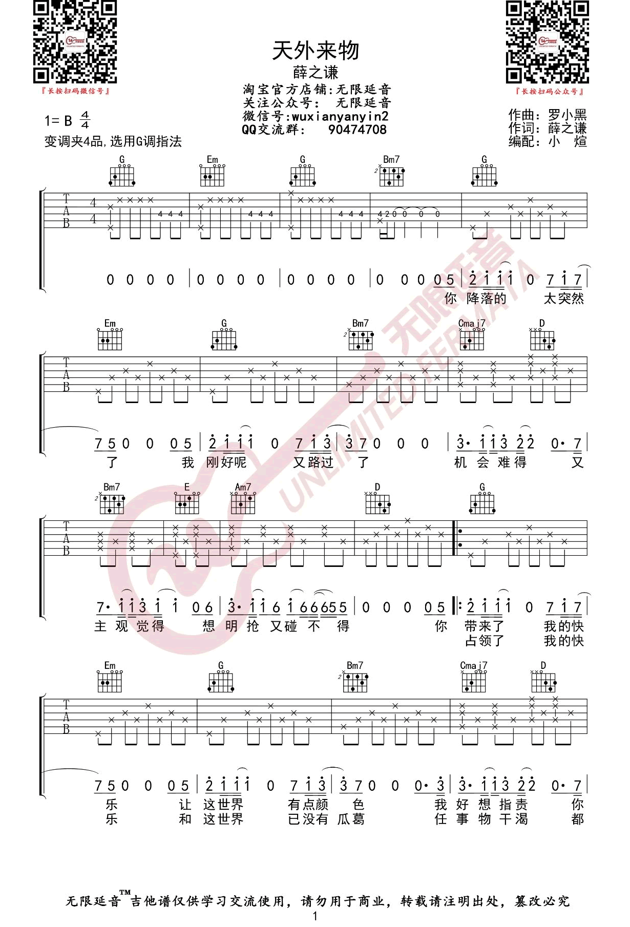 - 天外来物吉他谱_薛之谦_G调_弹唱六线谱