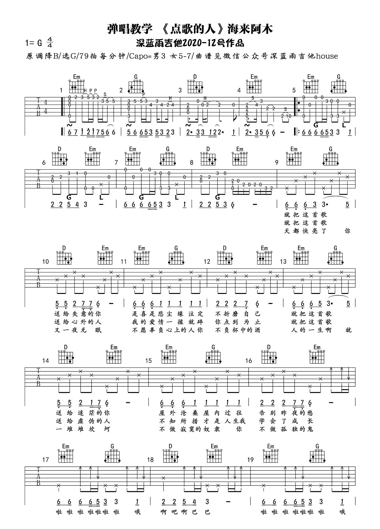 - 点歌的人吉他谱_海来阿木_G调_弹唱六线谱