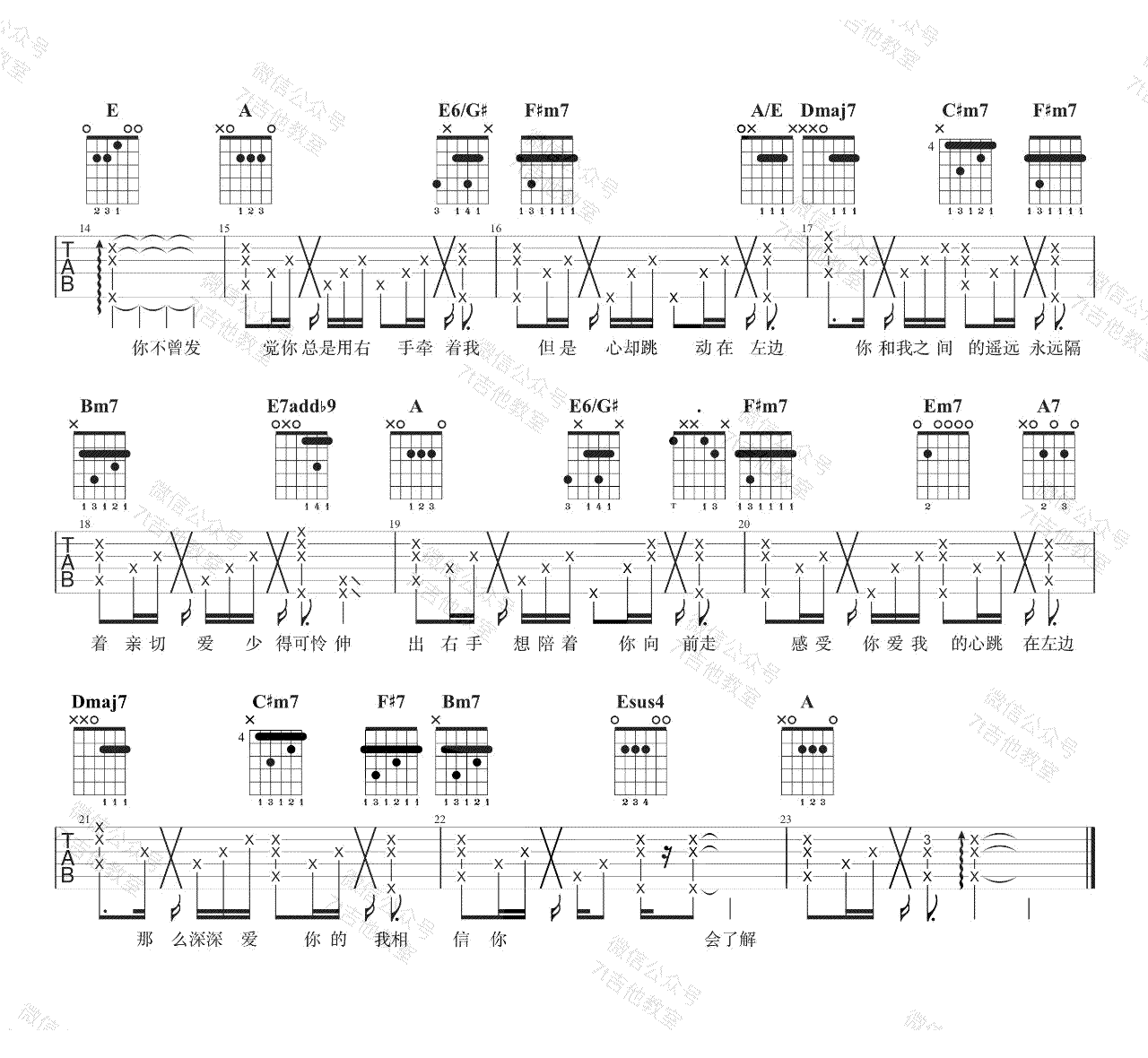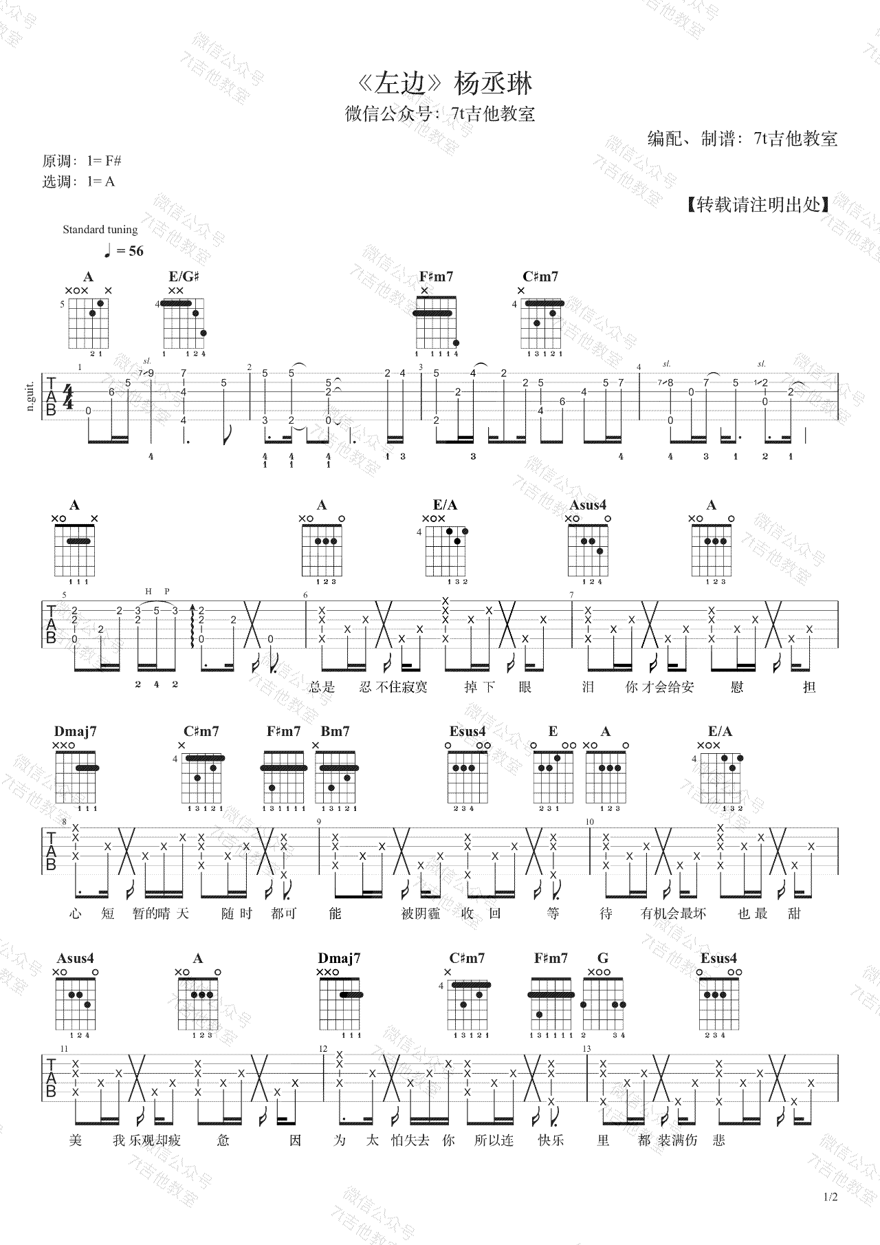 - 左边吉他谱_杨丞琳_A调指法_弹唱谱