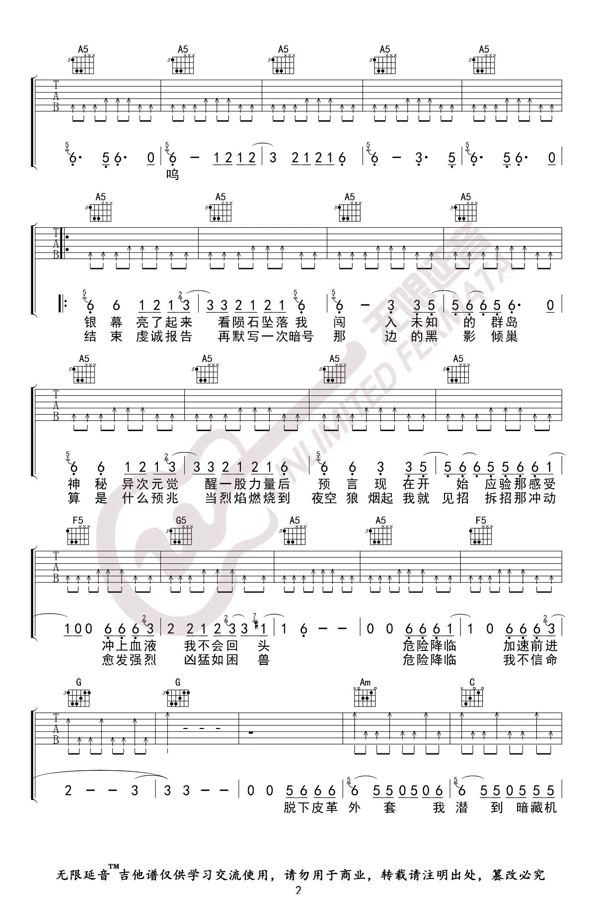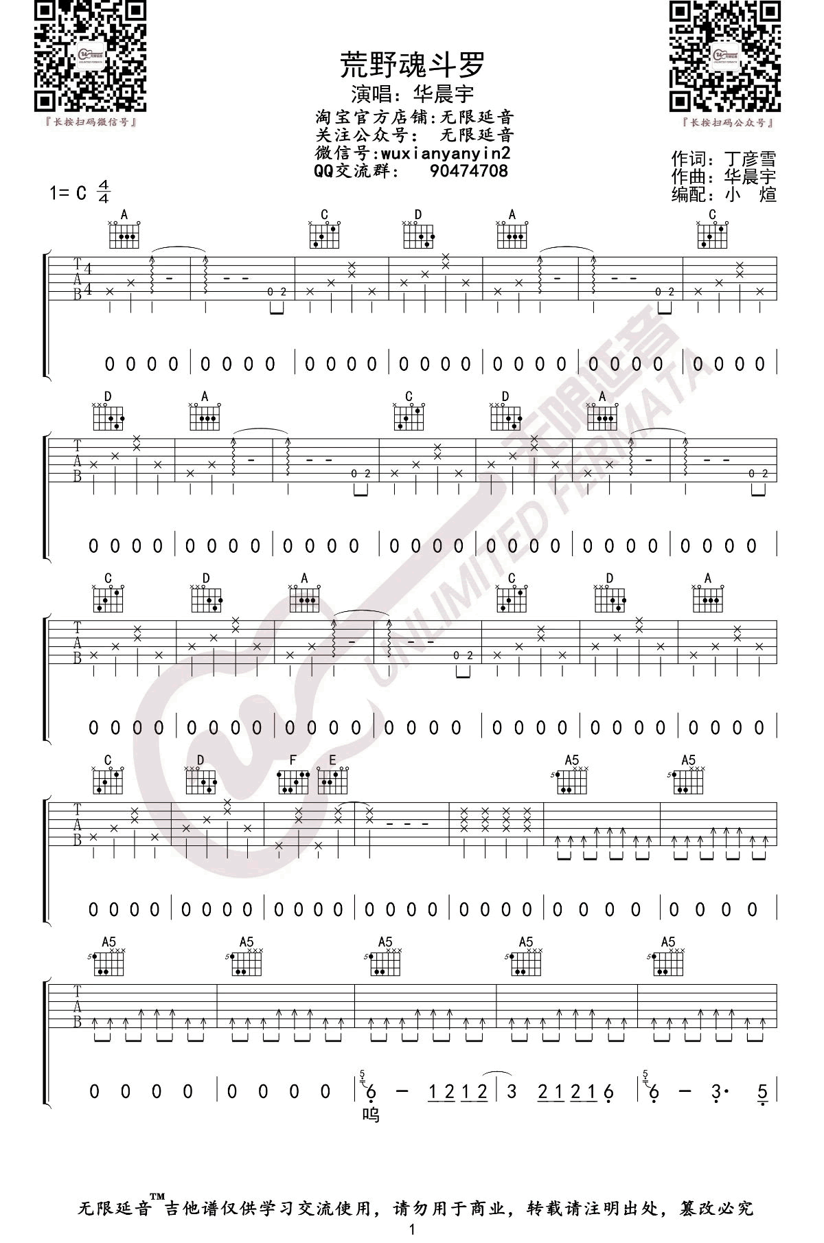 - 荒野魂斗罗吉他谱_华晨宇_C调原版_高清弹唱谱
