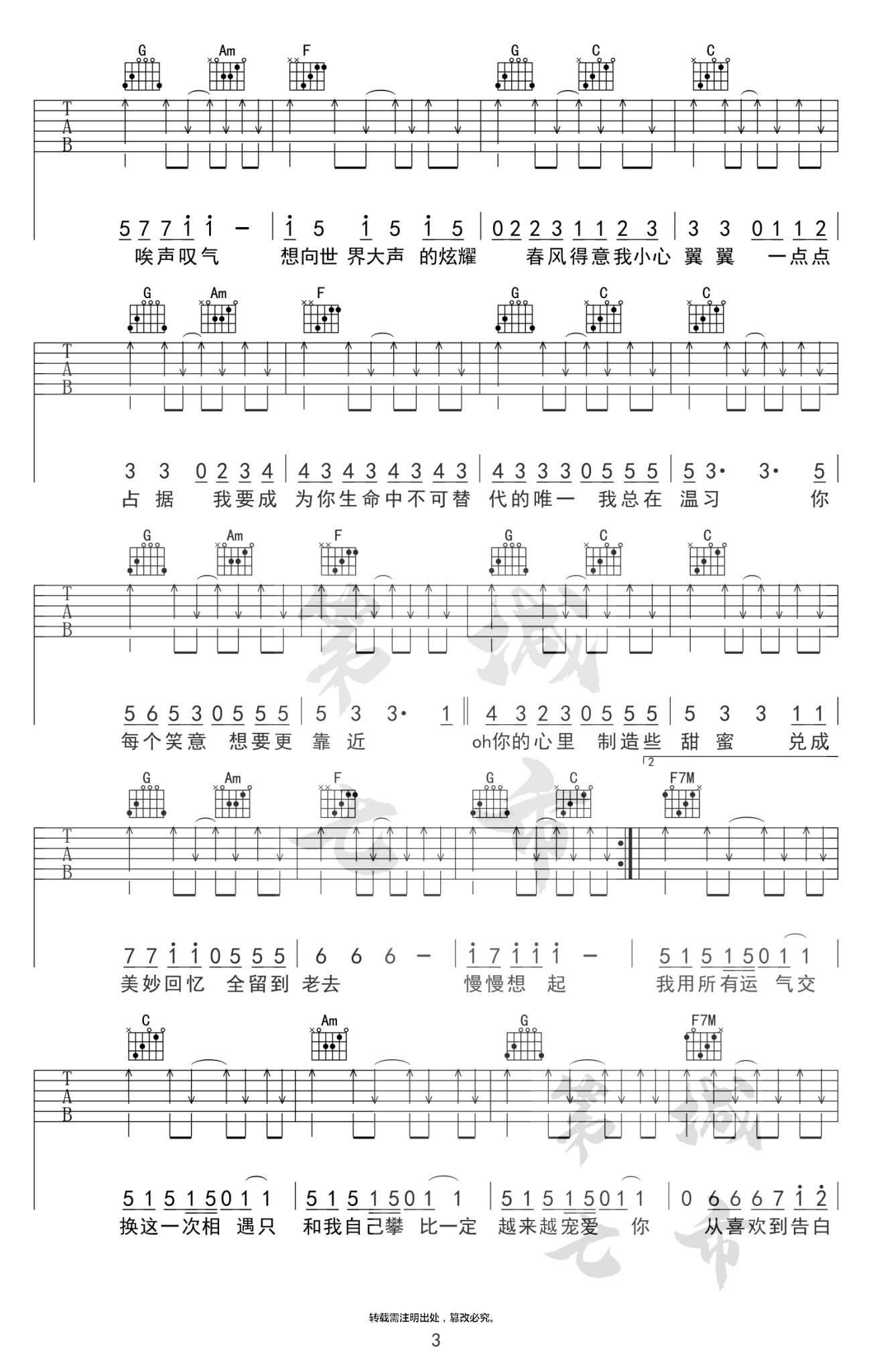 热门吉他谱(图片谱)