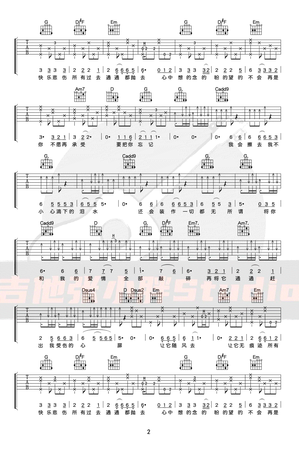 - 薛之谦《天外来物》吉他谱_G调指法_图片谱