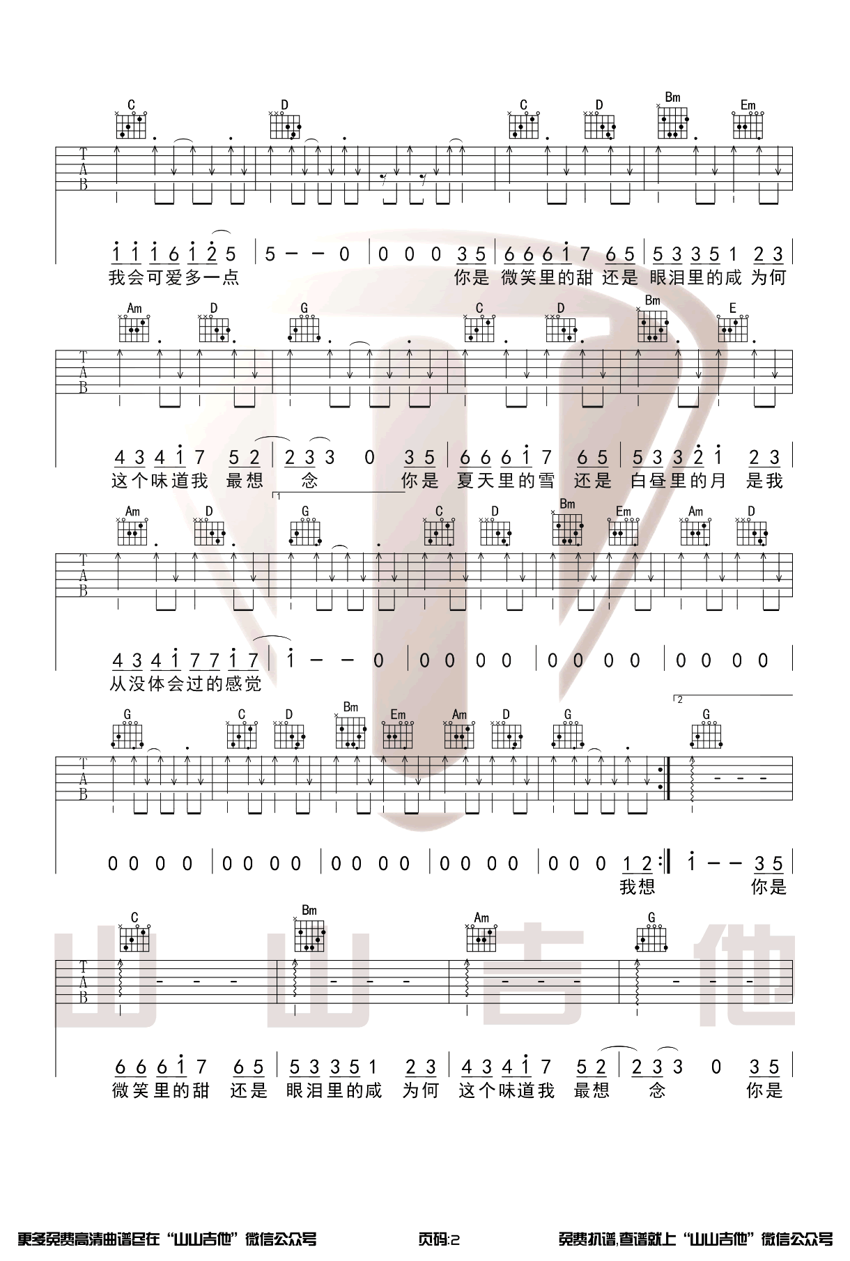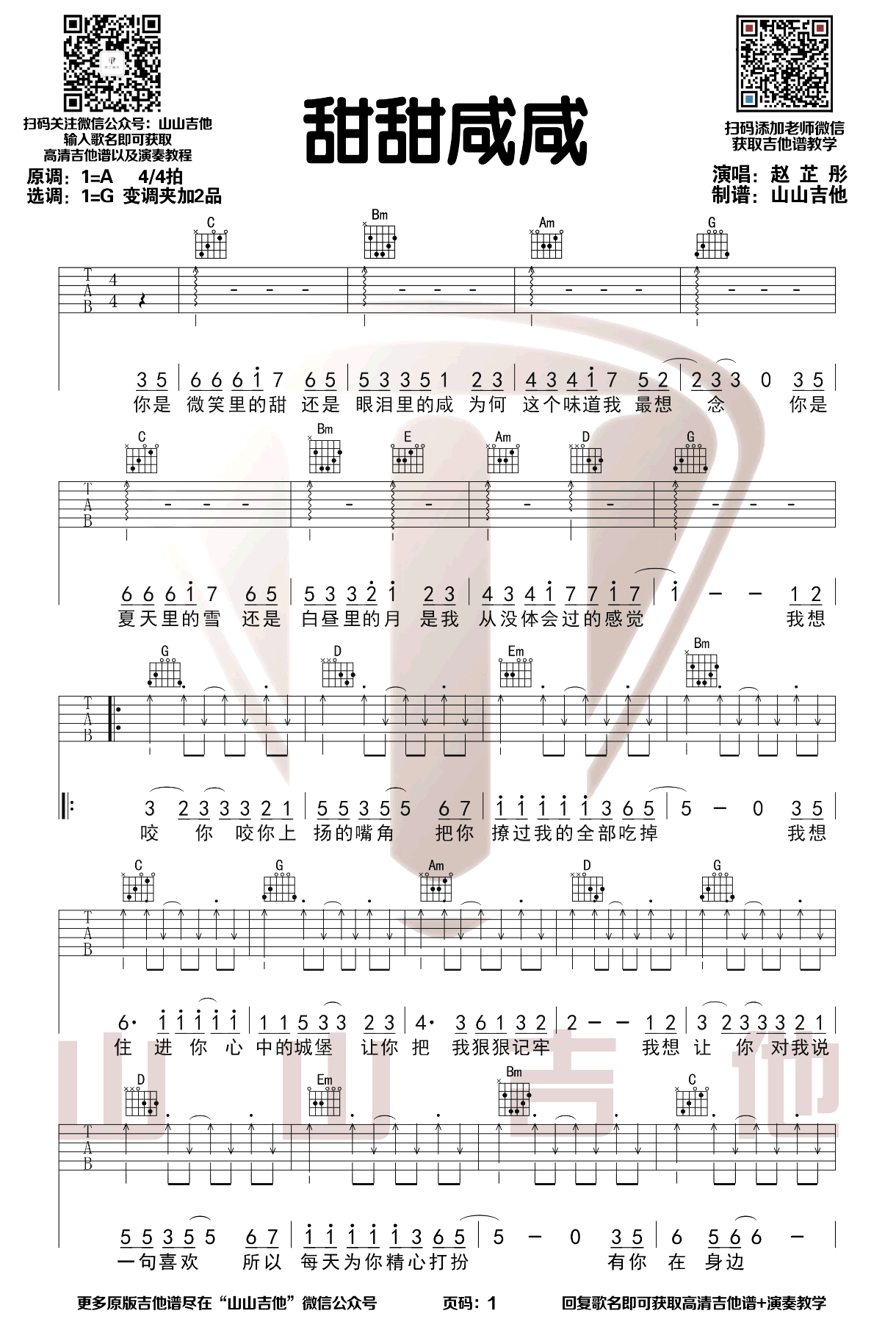 - 甜甜咸咸吉他谱_赵芷彤_G调原版_弹唱图片谱