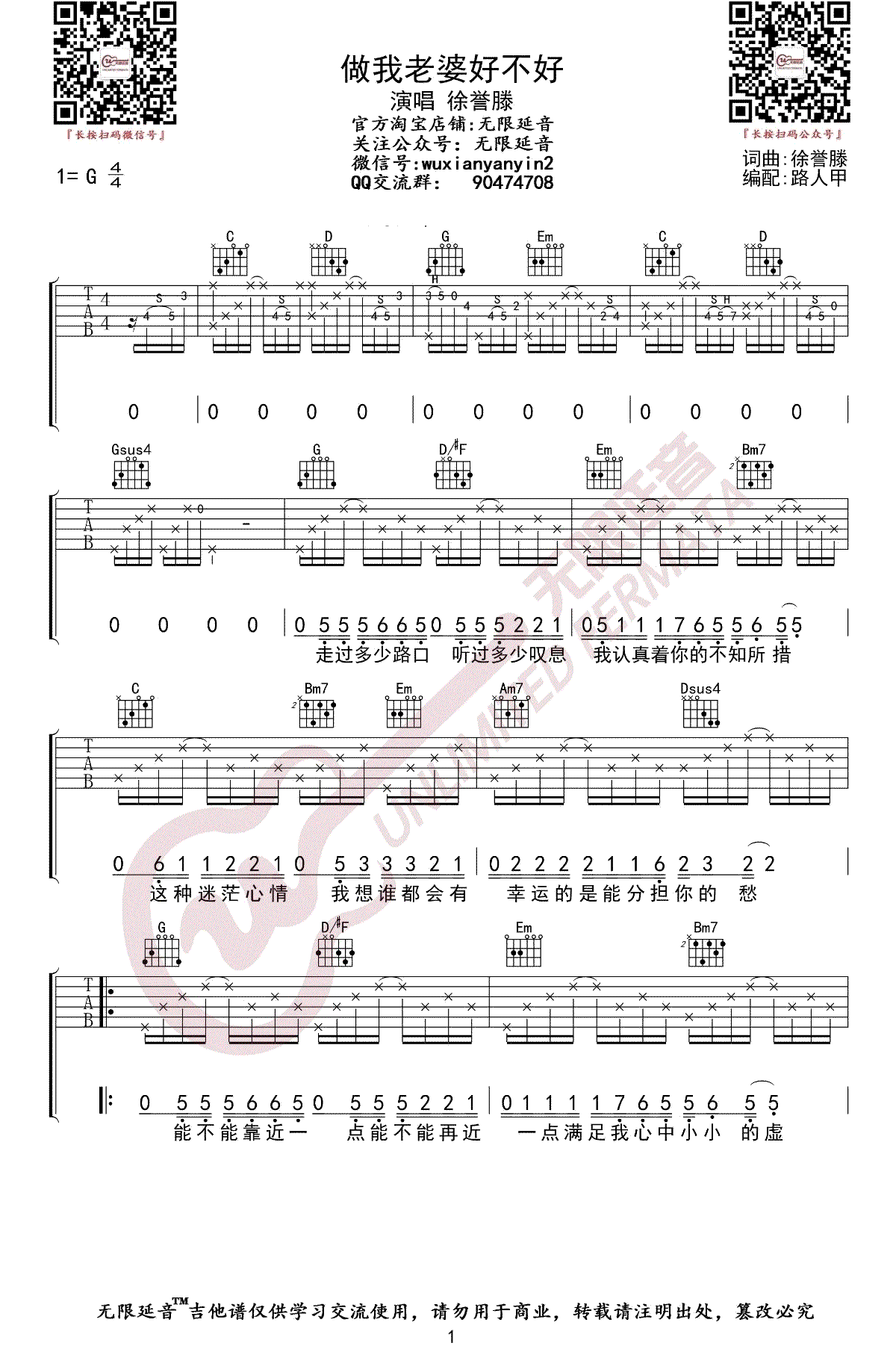 - 做我老婆好不好吉他谱_徐誉滕_G调_弹唱六线谱