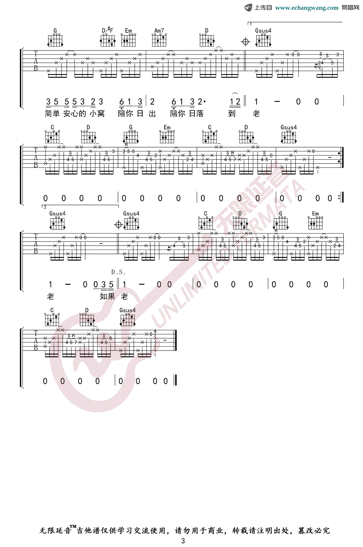 - 你的万水千山吉他谱_海来阿木_G调弹唱谱
