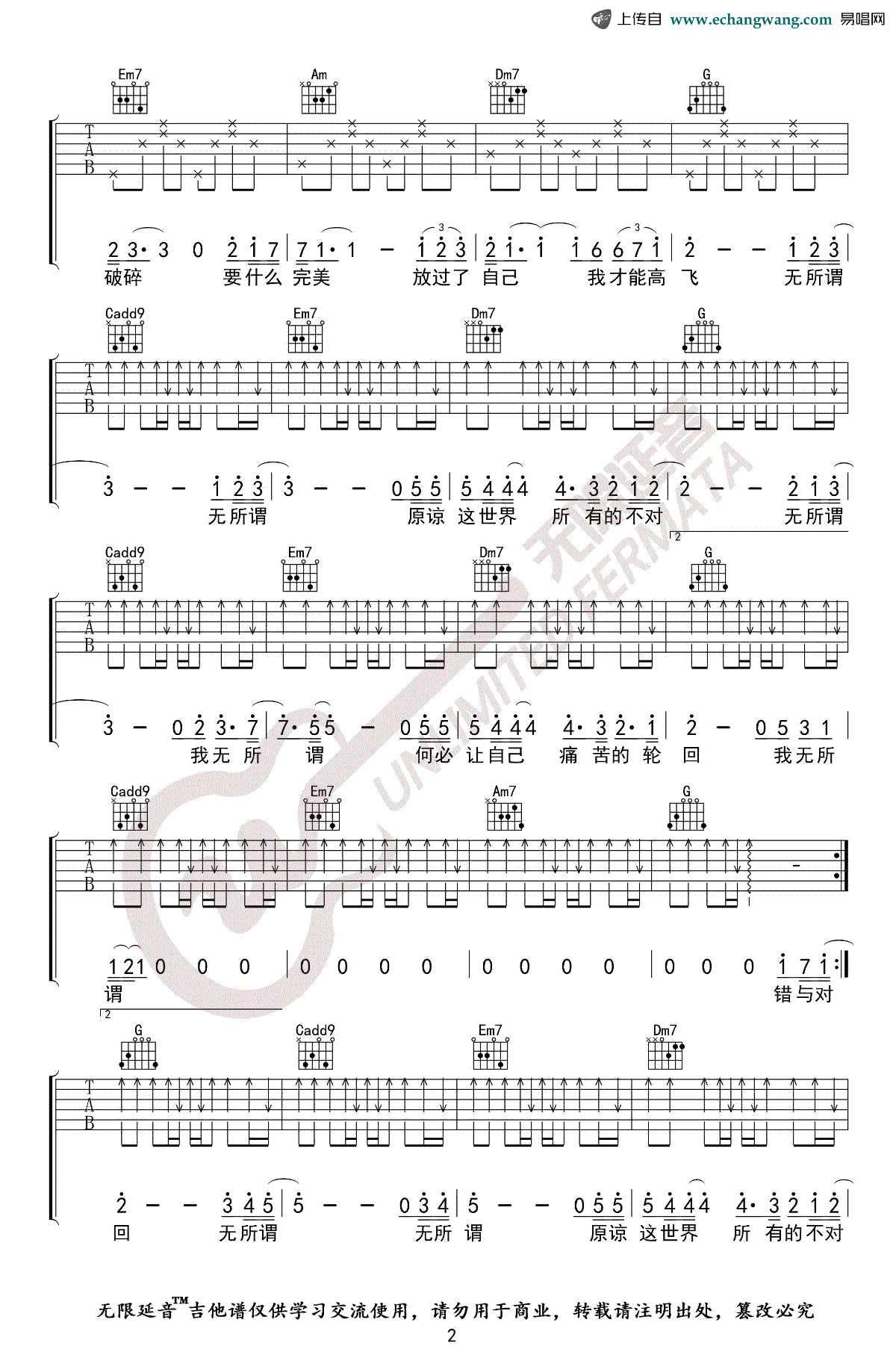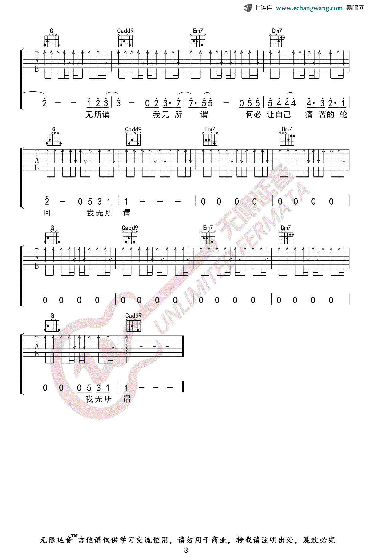 - 无所谓吉他谱_杨坤_C调弹唱谱_图片谱