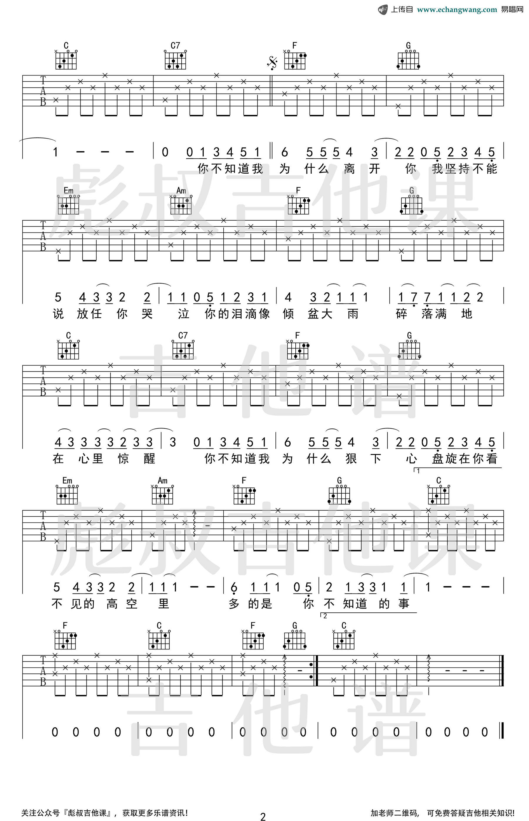 - 你不知道的事吉他谱_王力宏_C调_高清弹唱谱