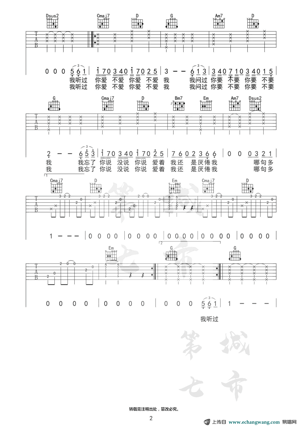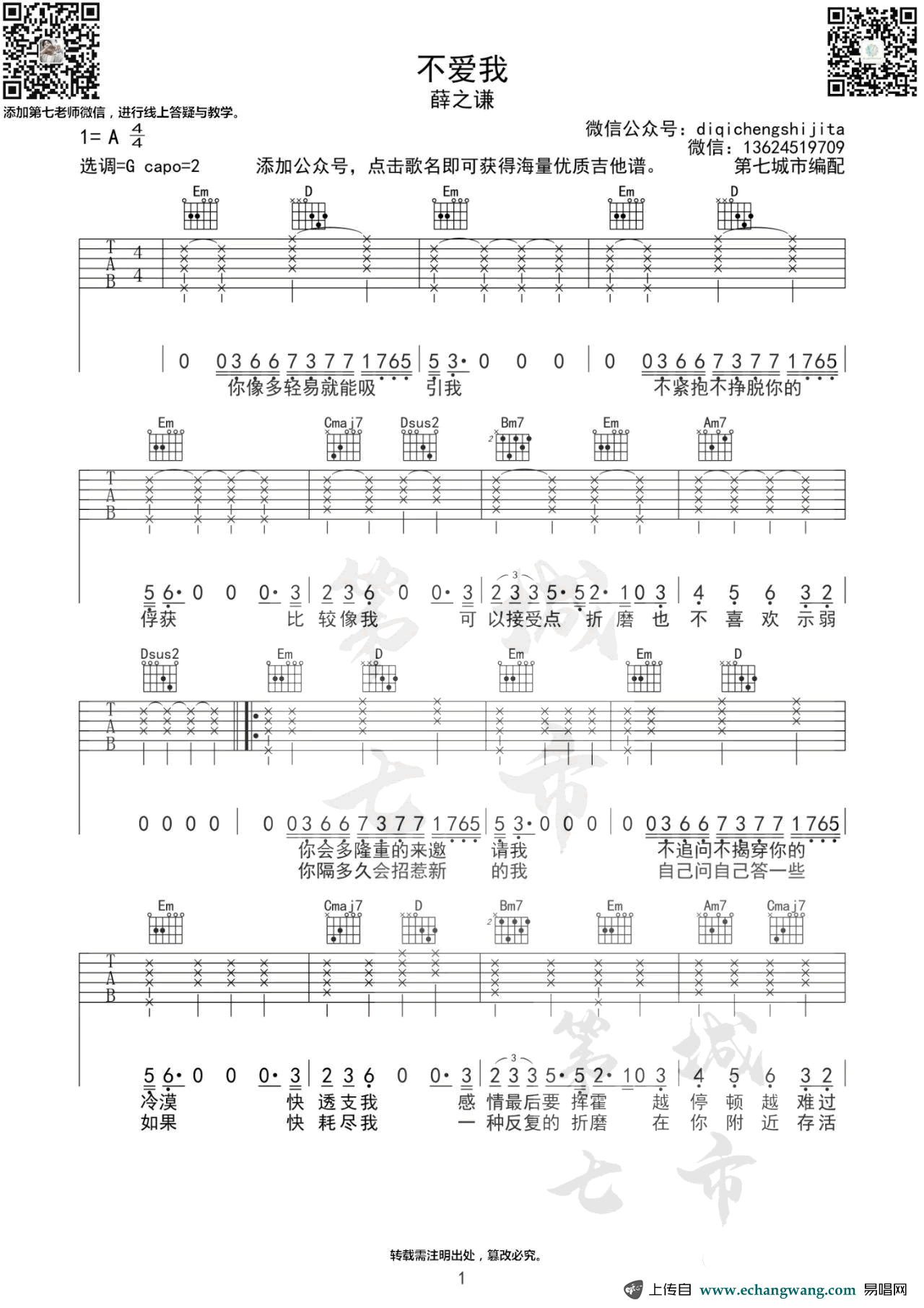 - 不爱我吉他谱_薛之谦_G调指法_弹唱谱