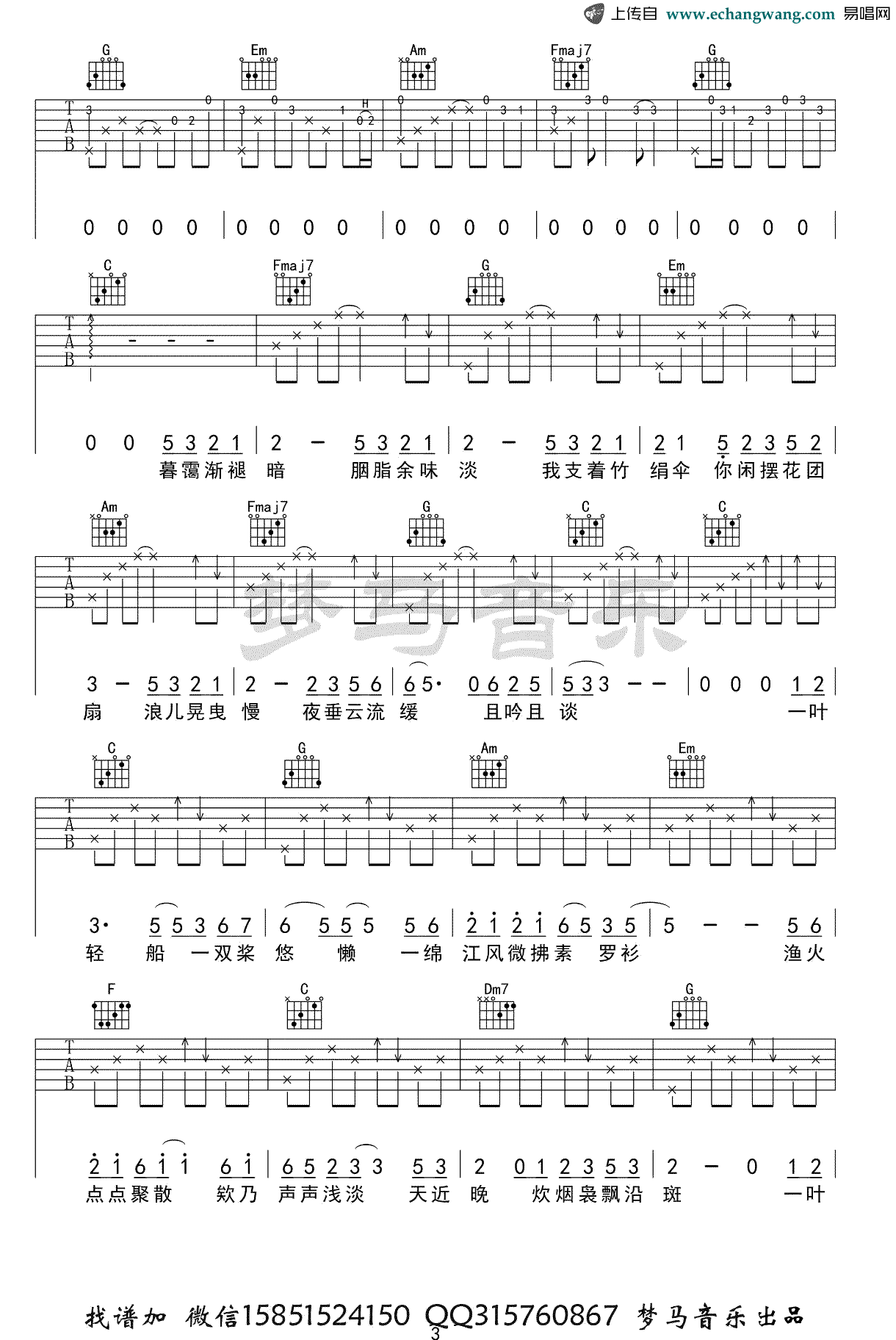 - 烟雨行舟吉他谱_伦桑_C调完整版_古风歌曲_弹唱谱