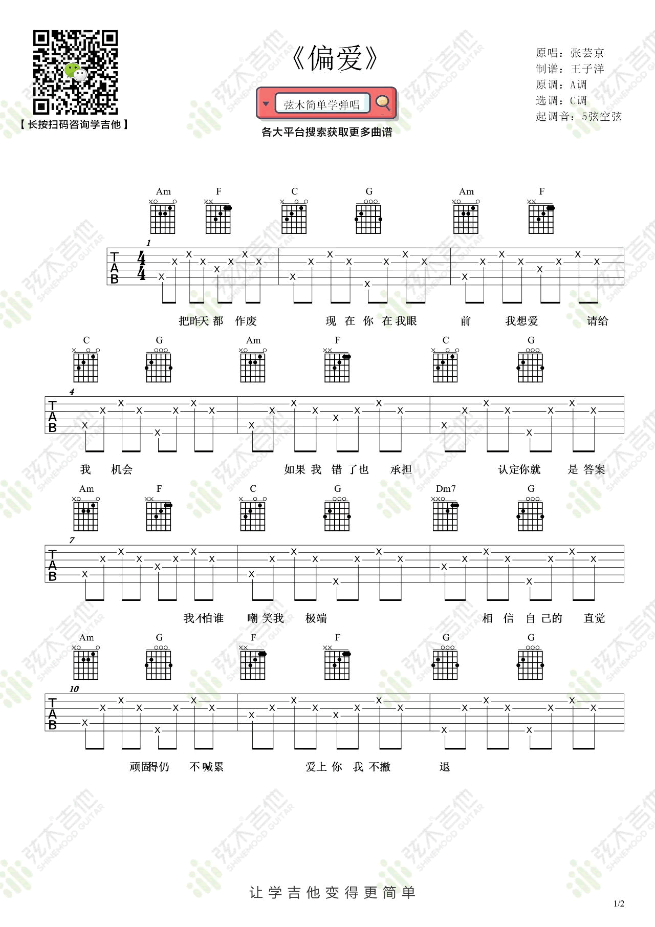 - 偏爱吉他谱_张芸京_C调弹唱谱_仙剑三插曲