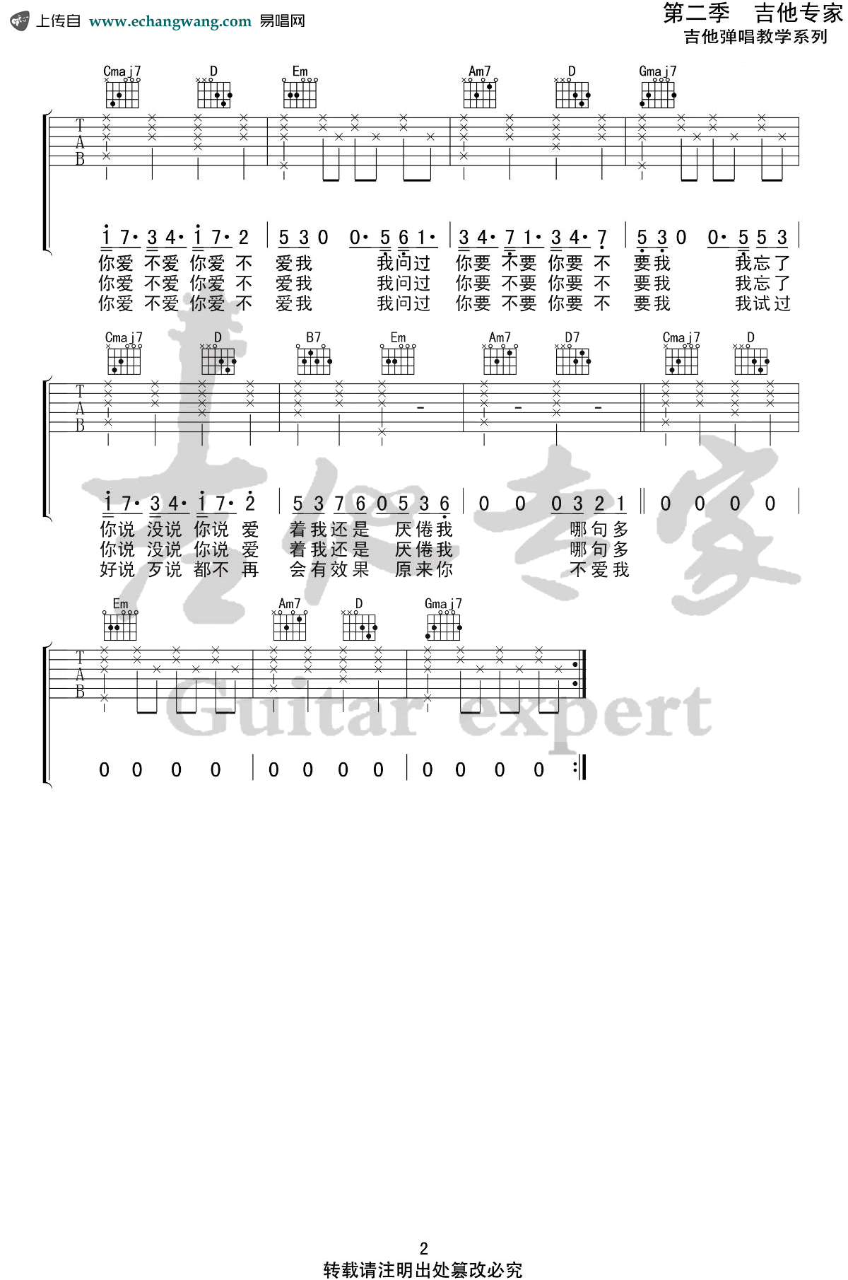 - 我爱你不问归期吉他谱_白小白_G调弹唱谱